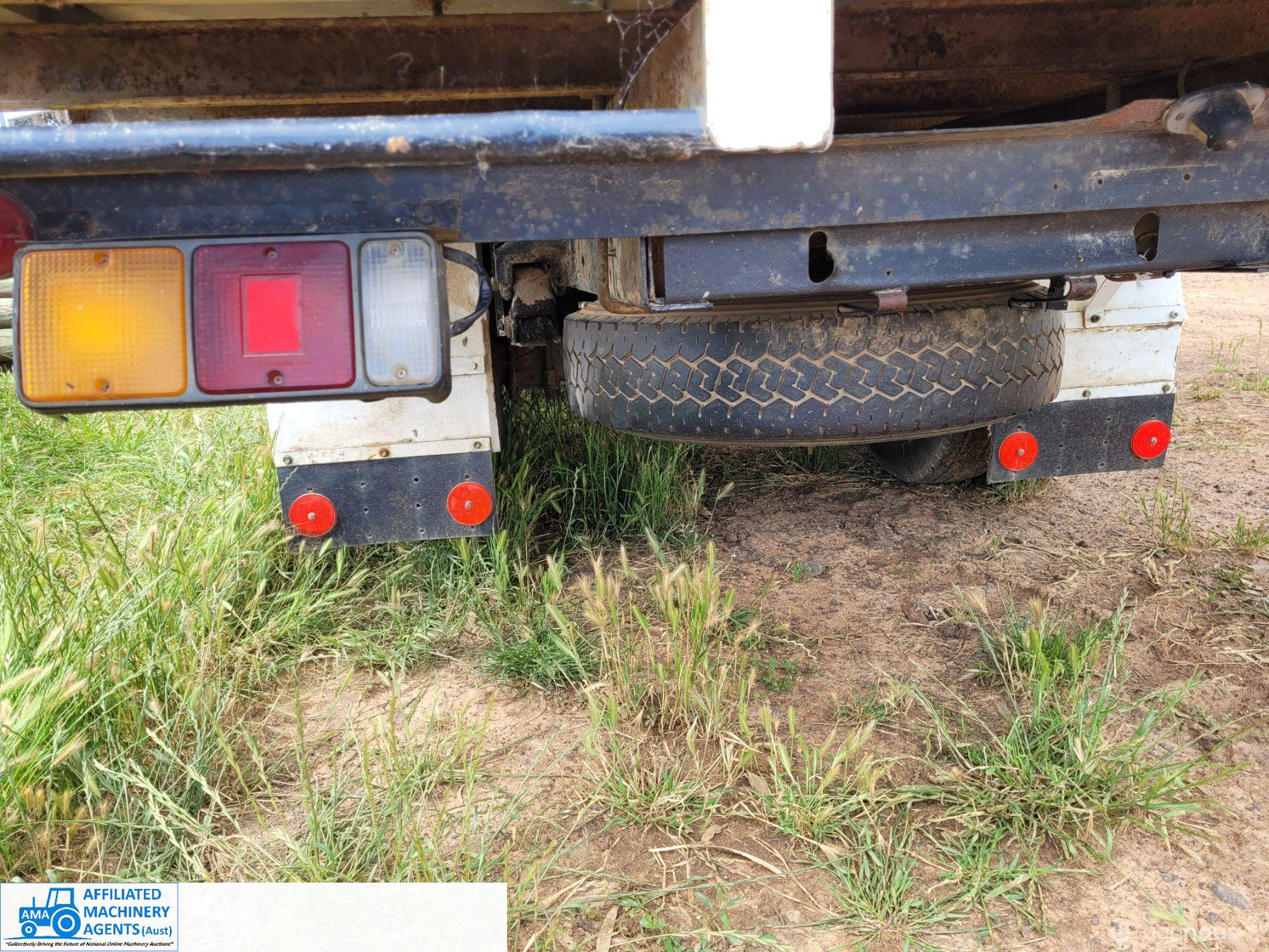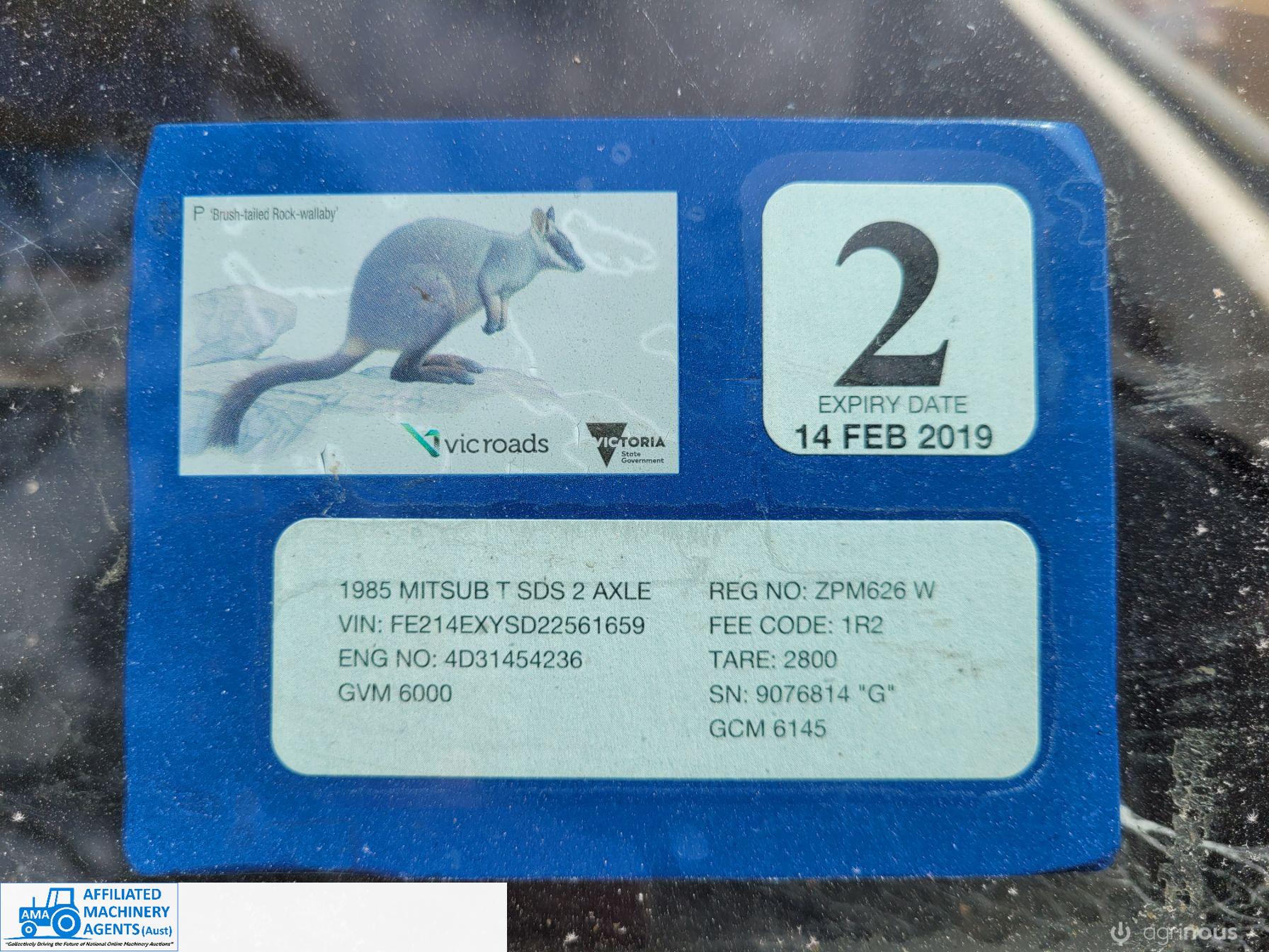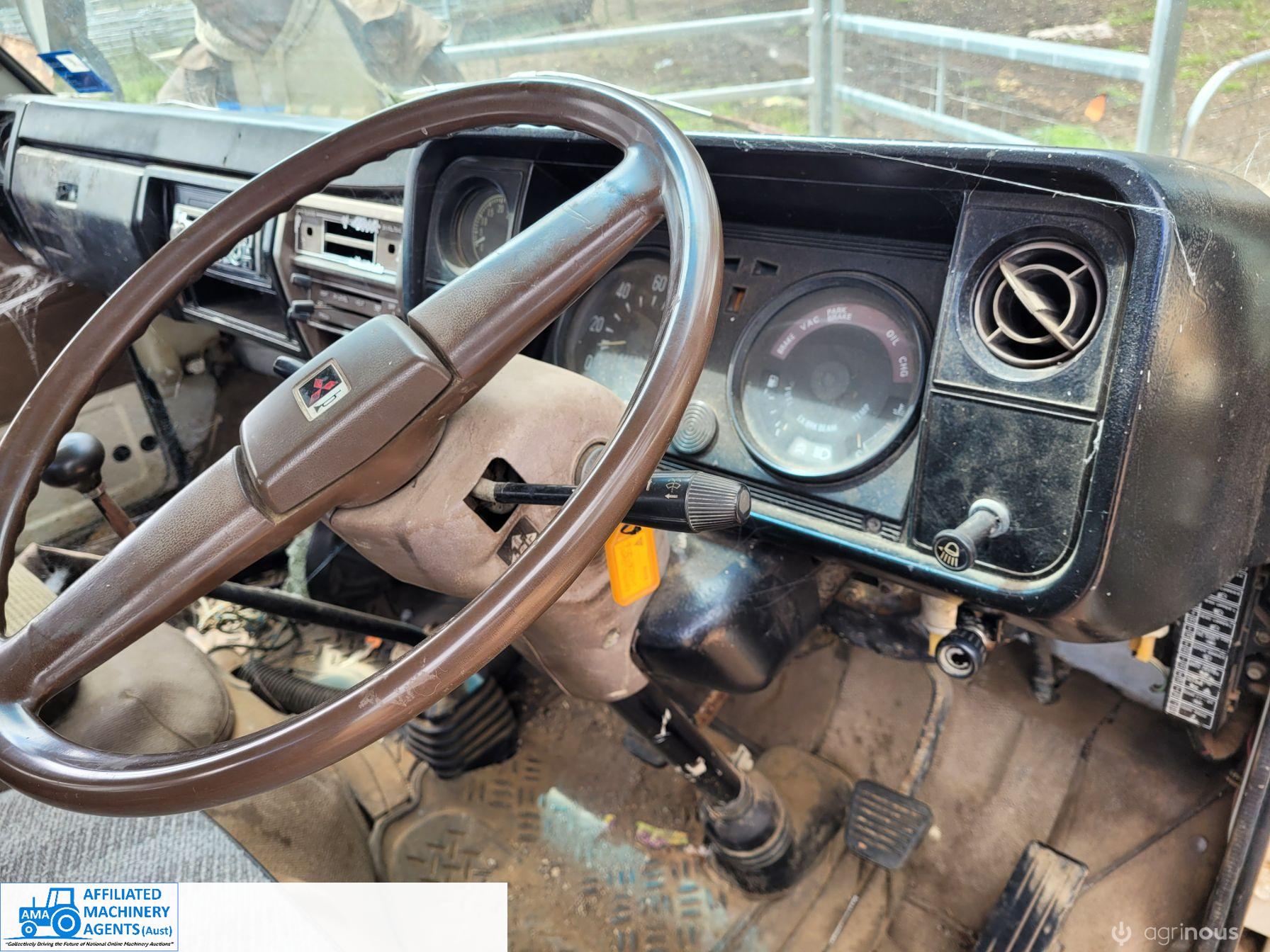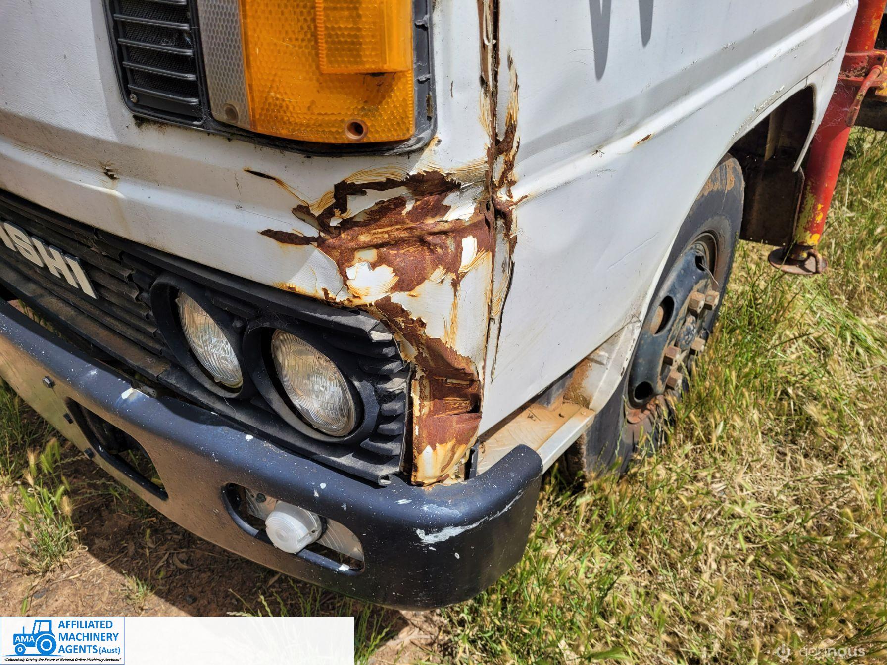 1985 Mitsubishi Canter Truck (Model FE214); 6 Ton GVM; 2.8 Ton Tare; 3.3ltr 4cyl diesel engine; 5 speed manual; Original 217,374 Kms; Solid checker plate tray 3,980mm x 2,135mm with solid timber drop sides; Manual operated Hiab Crane; 6 good tyres (approx 50%). Starts easily, runs & drives well, good clutch & brakes. Ideal station/farm truck, or suit Tradie once roadworthied & registered. Sold as-is un-registered.