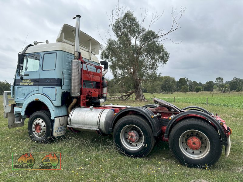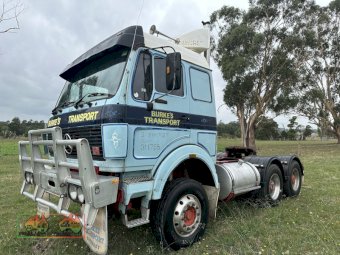 1987 Mercedes Benz 2238, 883,054 kms ( not sure if original) 380hp V8 Benz Engine, 13sp Roadranger Gearbox, Power Passenger Window, CD Player, Double Bunks, in very good condition for its age, no rust in cabin, steer tyres near new, drive tyres still have life in them, new front brake linings and drums, front wheel bearings regreased, rear brake linings about half worn. ~ (NB: 5% Buyers Premium + GST will be added to sale price of all Lots sold) ~ Contact AMA Agent: Michael Downie 0458 241 242