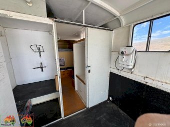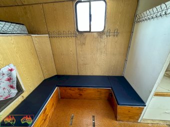 3 seats ~ Living has fridge microwave sink double bed. Storage cupboards etc ~ 500w solar panels and 200Ah batteries ~ 12v throughout ~ LED lights inside and out ~ Awning on 1 side ~ Horse box has tack cupboard. ~ Cowboy shower. ~ 3 large WB angles ~ Easily fits 17.2 hh horses. ~ Hydraulic tailgate. ~ Tyres all new 2 years ago ~ New batteries ~ Cons.