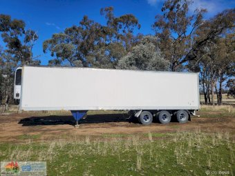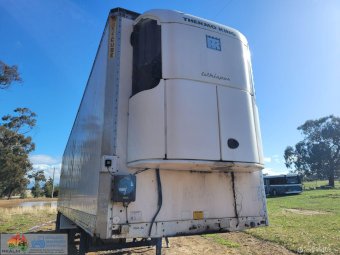 1995 Maxi-Cube "Meat Hanger" Freezer Van ~ Tri-axle on airbags ~ 44ft holds 22 pallets ~ Thermo-King Wisper refrig unit with 4cyl diesel mtr ~ The refrig unit has had recent overhaul ~ Meat hanging roof rails have been removed ~ 11R22.5 Spider rims ~ Tyres 25% ~ Sold un-reg no RWC ~ Cheap older trailer.