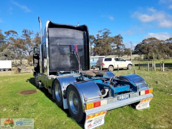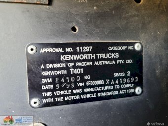 1999 Kenworth T401 Prime Mover ~ Road Train Rated (GCM 115,000Kgs) ~ Cat C12 turbo diesel engine ~ 395Hp ~ 18sp Overdrive Road Ranger gearbox ~ Highrise Sleeper ~ Airbag suspension ~ 11R22.5 Alloy wheels ~ Drive tyres as new ~ Steer tyres 80% ~ Mechanically good & has been prepped ready for Vic Roadworthy inspection