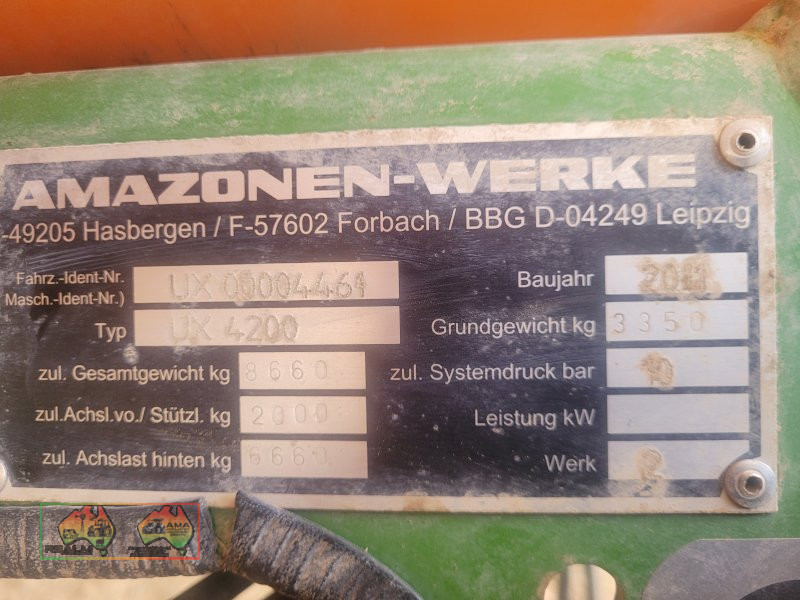 2011 Amazone UX4200 Special 28m Boom Spray. Hyd fold & high lift (approx. 7ft). 7 section boom with fully automated in cab controls. Near new 6 diaphragm rotary pump. Chemical induction mixing tank. 2x fresh water tanks. New boom ends fitted. Always cleaned & shedded, paddock ready. Don't miss out Inspection recommended