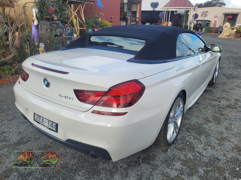 2012 M-series BMW 640i 2 door Convertible ~ 4.0 Ltr twin turbo V6 ~ 6sp Sports Auto ~ 56,227 Kms ~ 1 Owner car ~ Immaculately maintained ~ Current Vic. Rego 31/08/2025 ~ VIN: WBALW72050DK15560 ~ Selling as-is, prior inspection recommended ~ GST Exempt Seller ~ (NB: 5% Buyers Premium + GST will be added to sale price of all Lots sold) ~ Contact AMA Agent: Michael Downie 0458 241 242