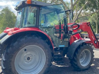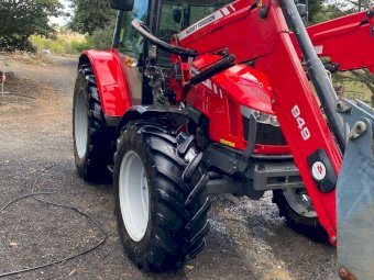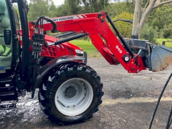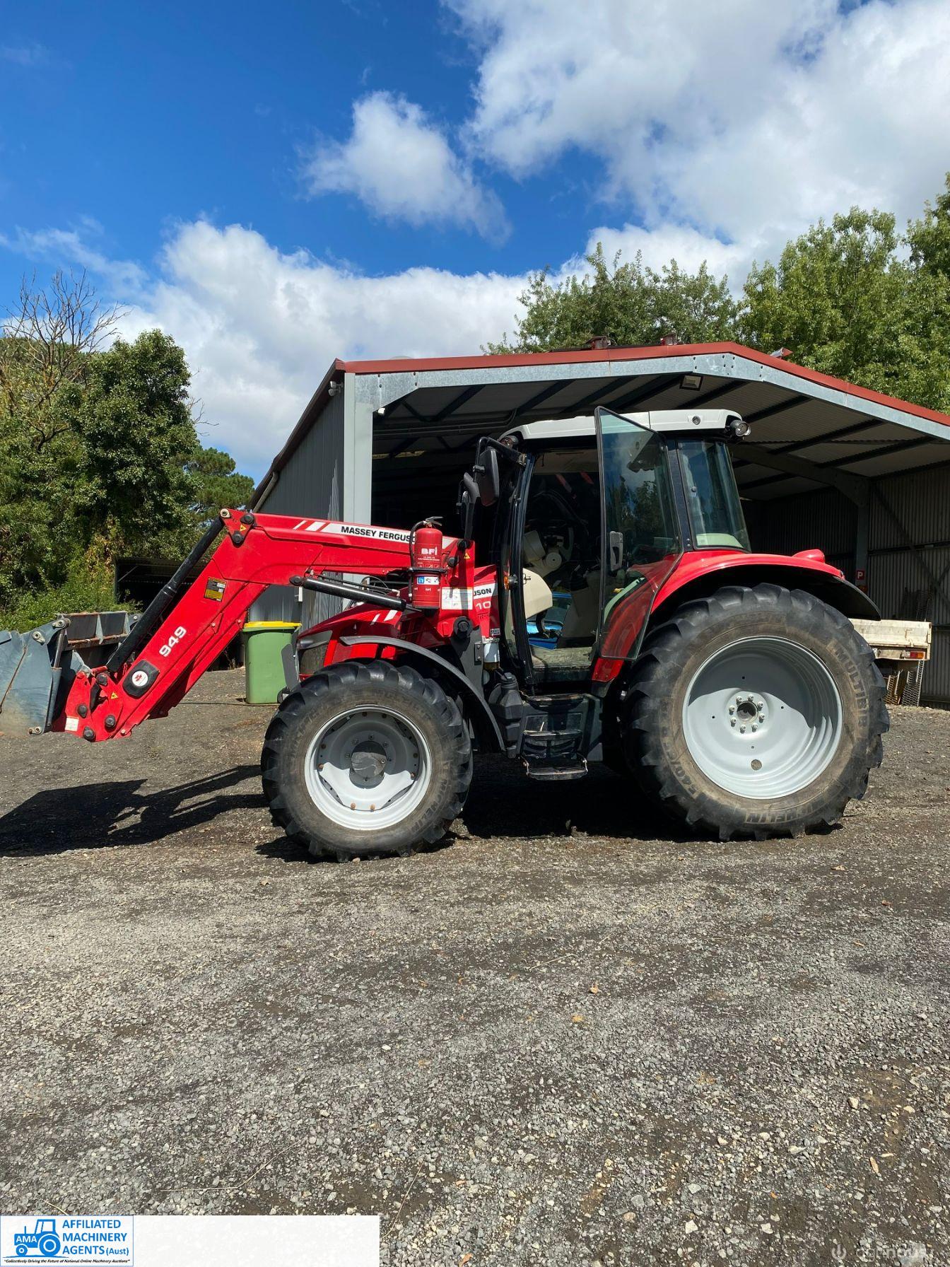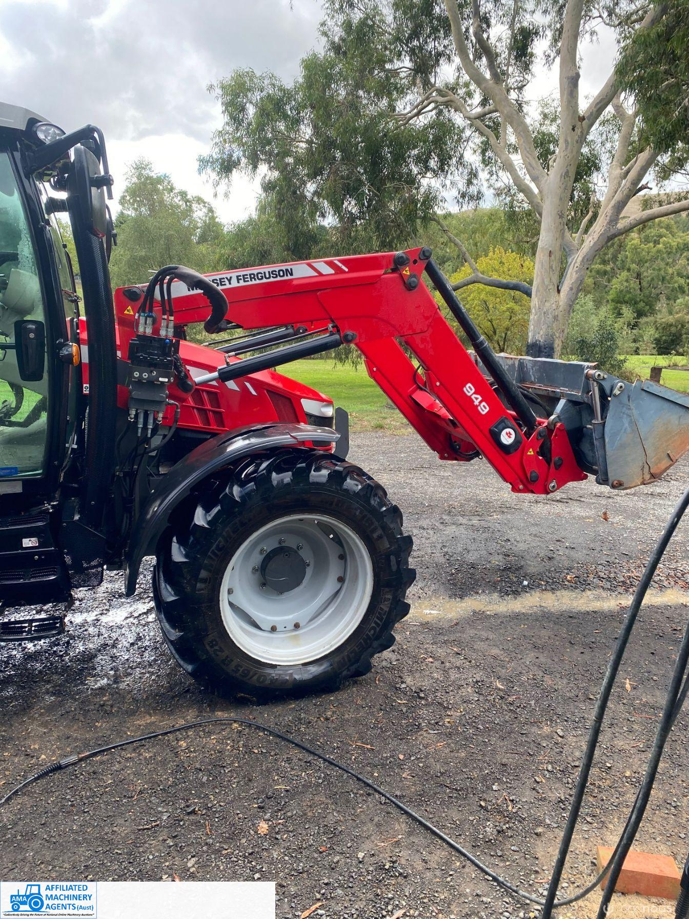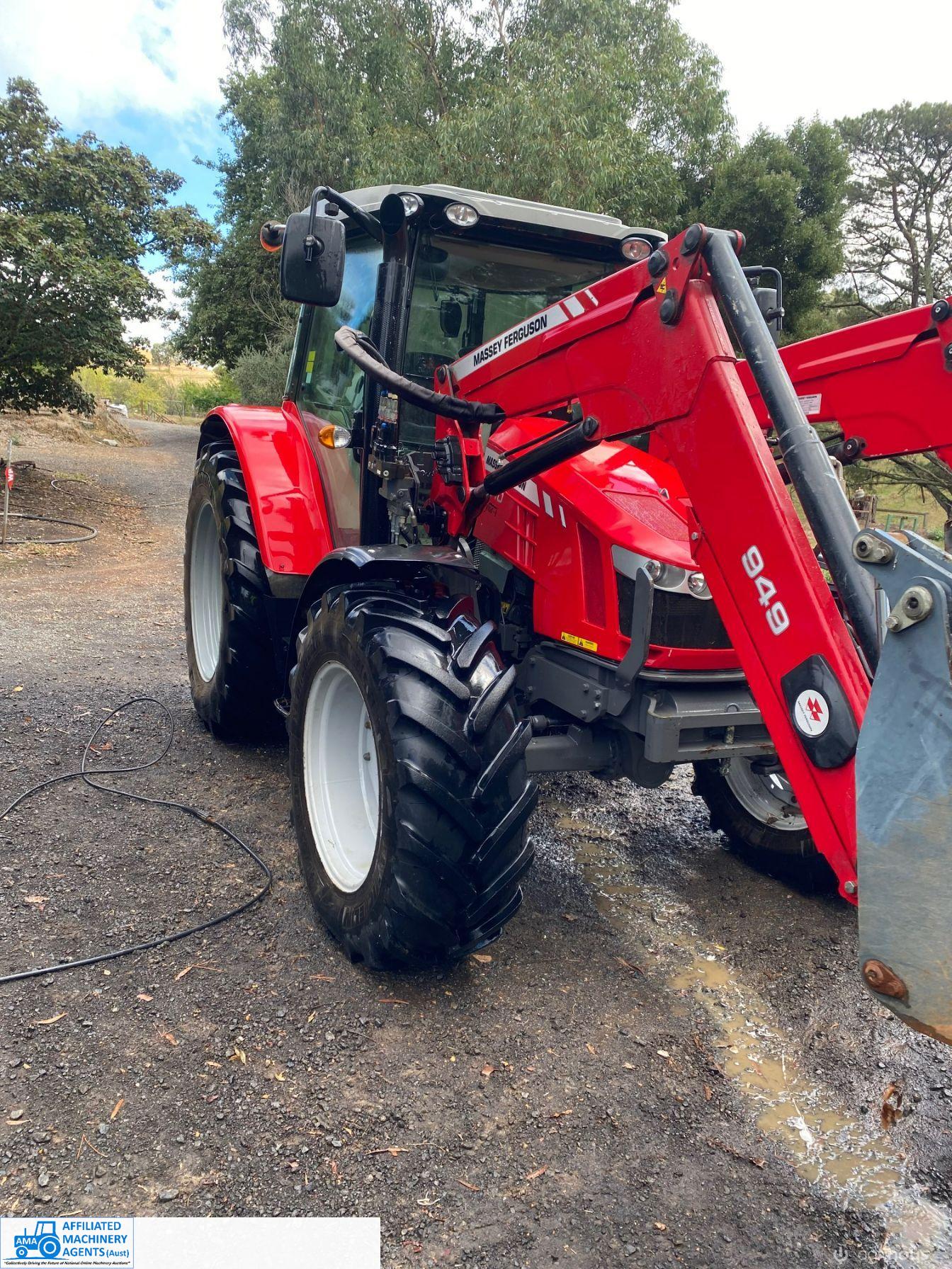 2017 MF-5610 Tractor with MF-949 FEL ~ 3.3ltr 100Hp diesel engine ~ This tractor presents extremely well being a 1 Owner machine with only 1,080 Hrs ~ Always serviced & maintained by the local MF Dealership ~ Tyres are good with plenty of tread ~ This tractor is near faultless with the only known damage being a hole in the front plastic wheel guard (see photo) ~ Suit a NEW BUYER