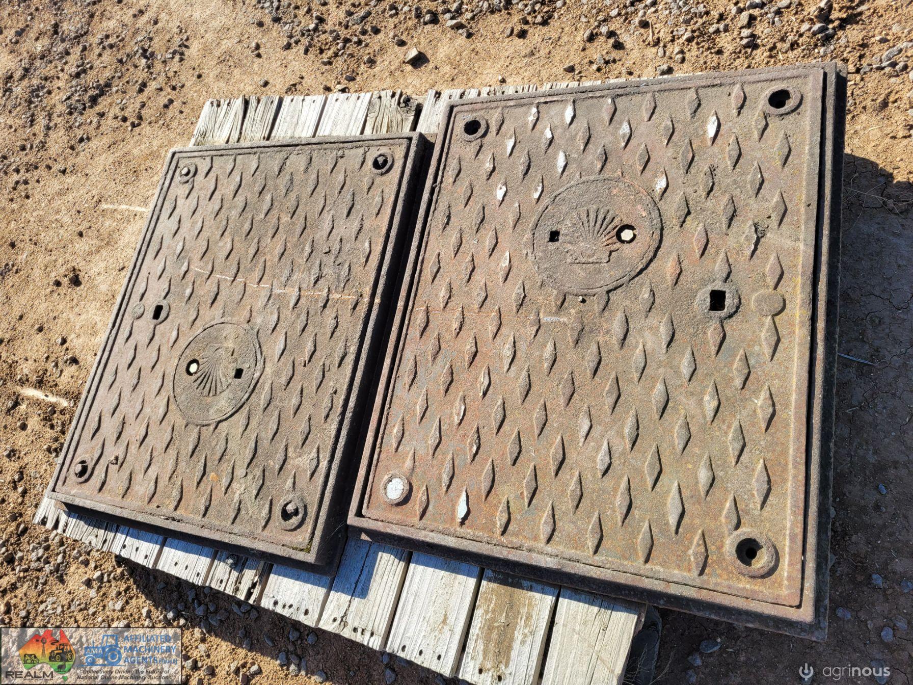 (2483) 2x Shell Oil Cast Iron Manhole Covers