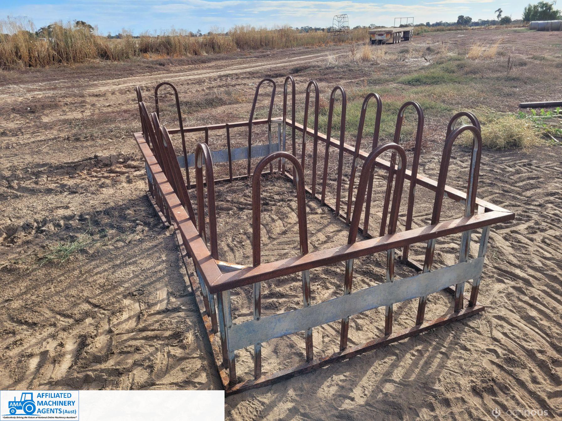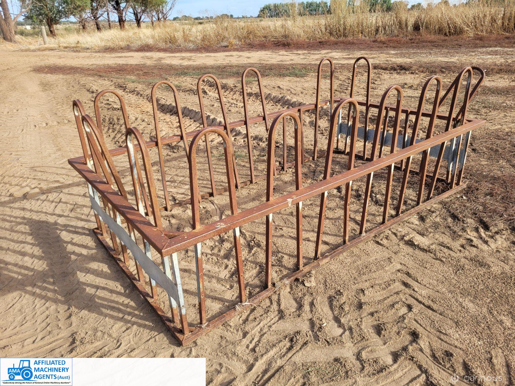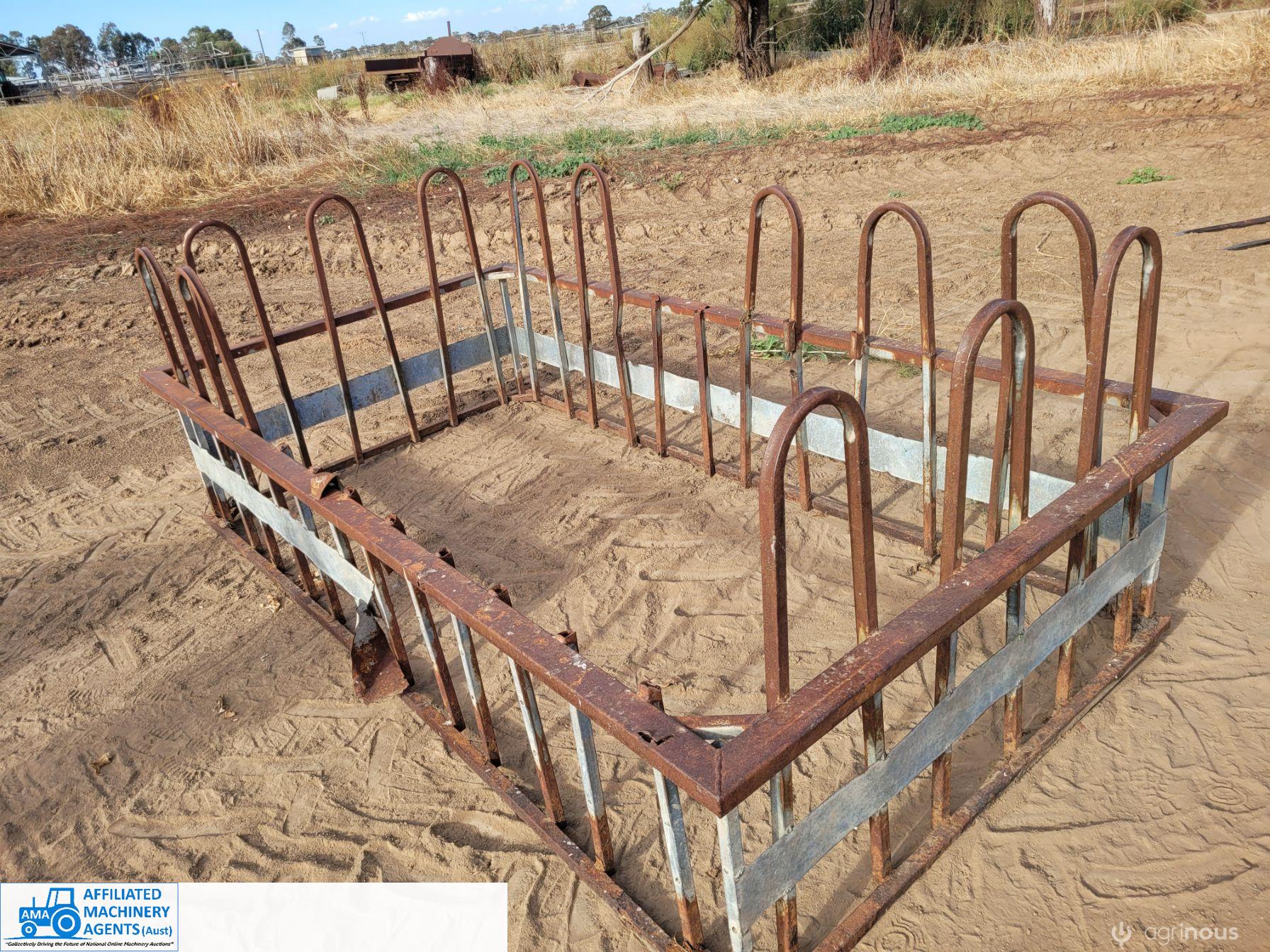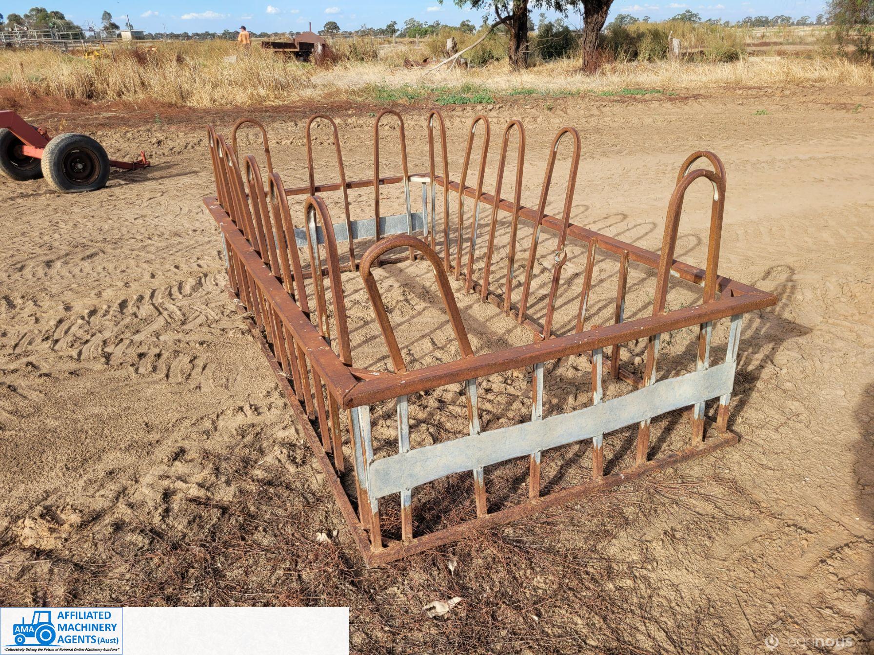 2x Square Calf Bale Feeders ~ Damage & rust as per photos ~ will require some repairs.