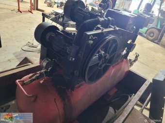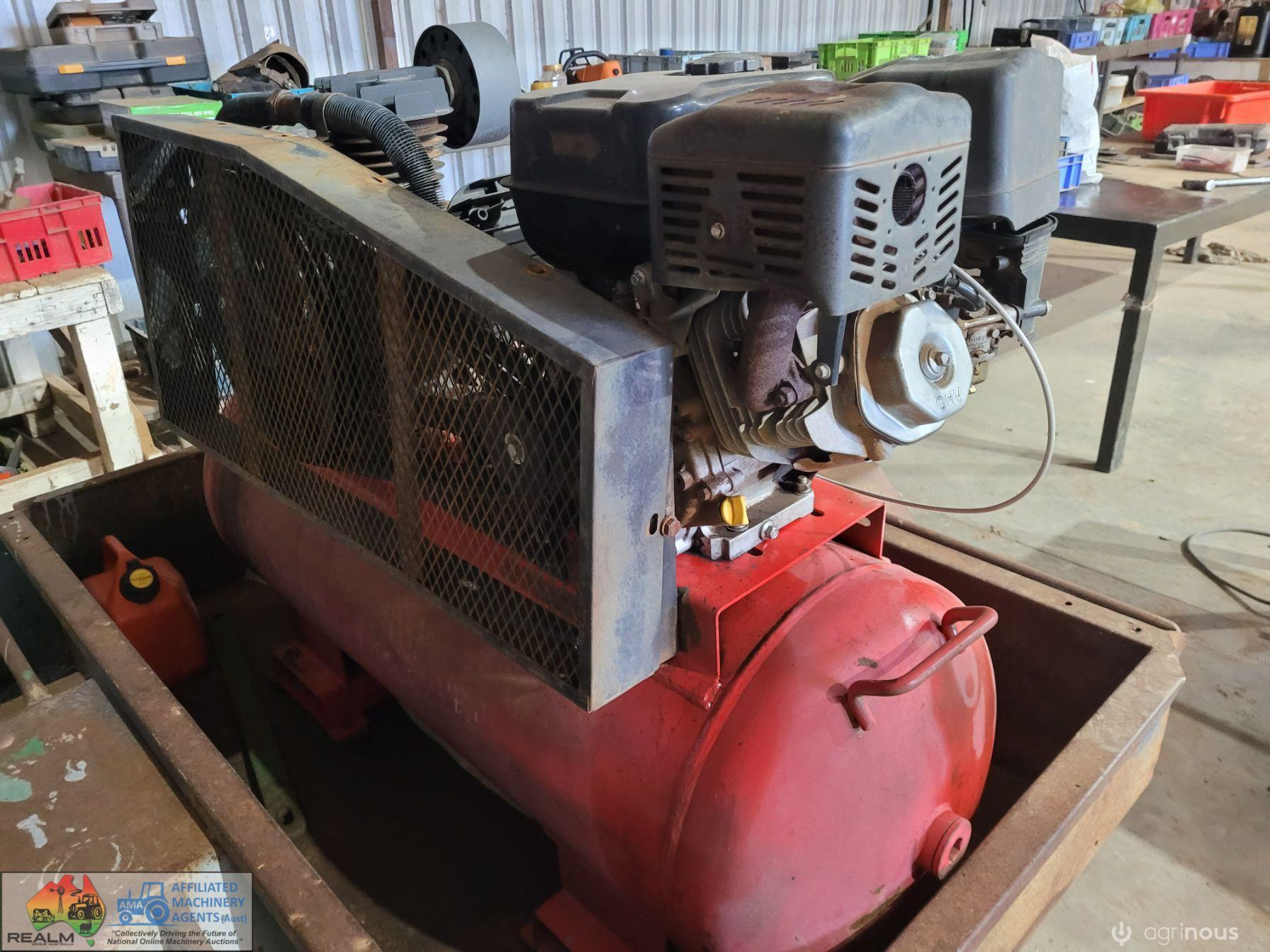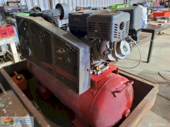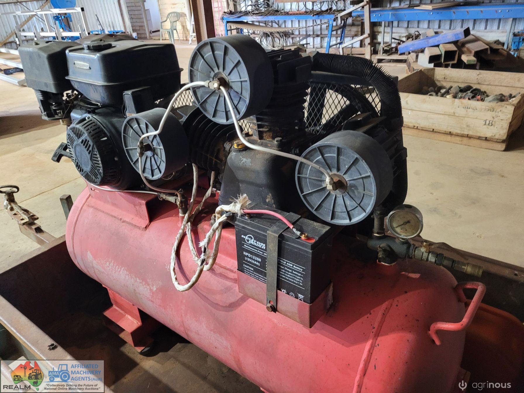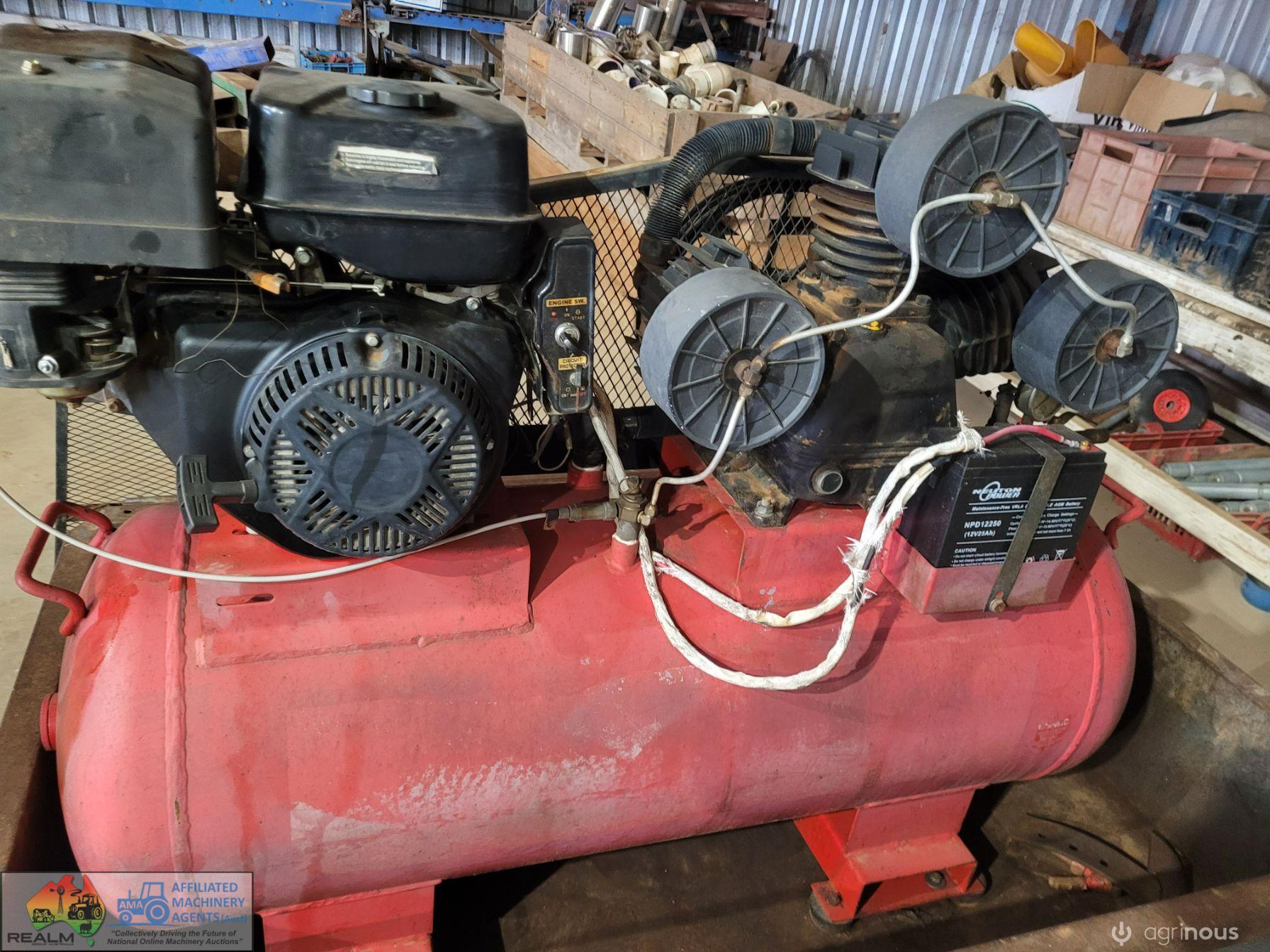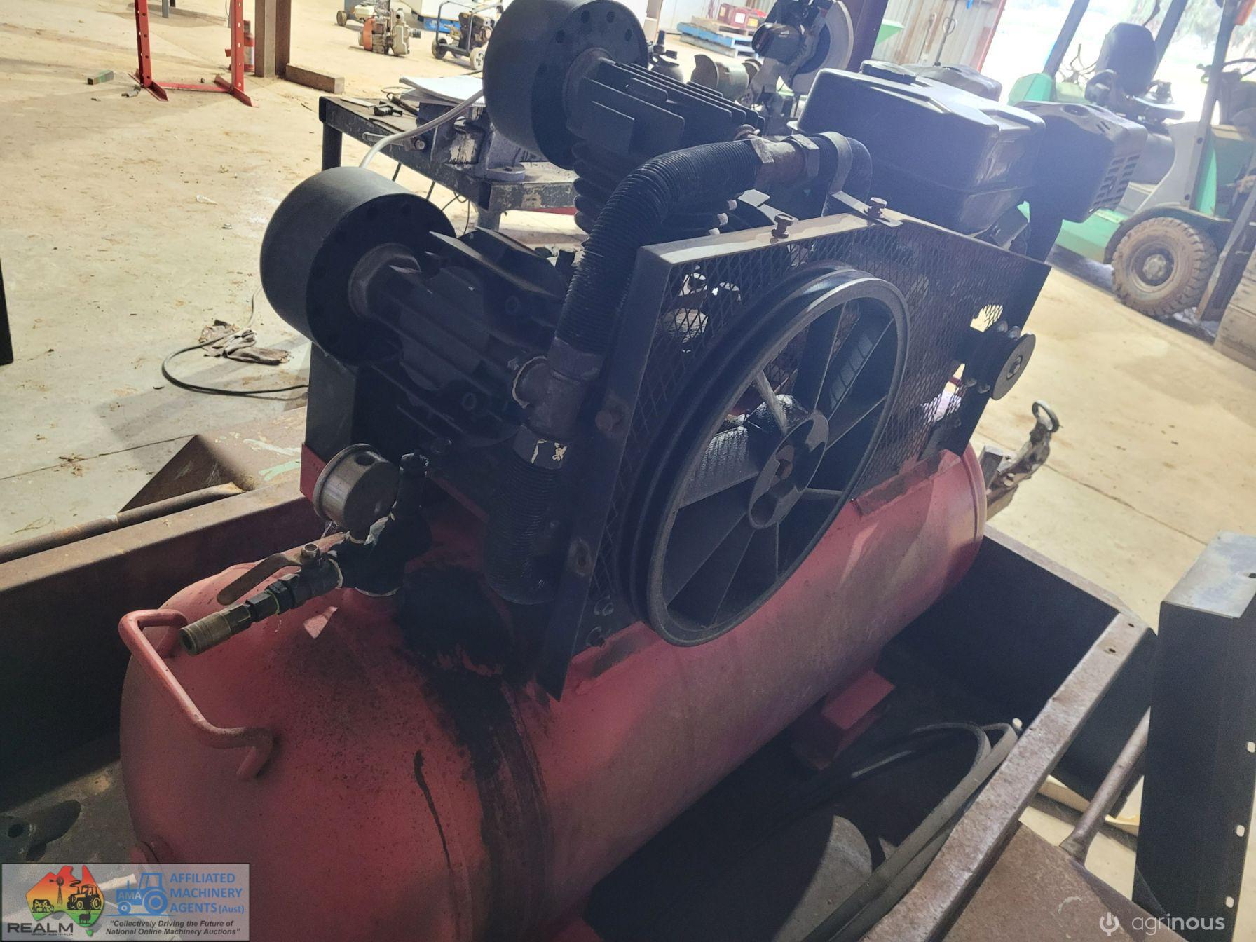 3cyl Industrial Compressor ~ electric start petrol engine ~ Engine starts & runs well ~ Good battery ~ Compressor will only generate 100 psi (may need some repair work) ~ Trailer not included.