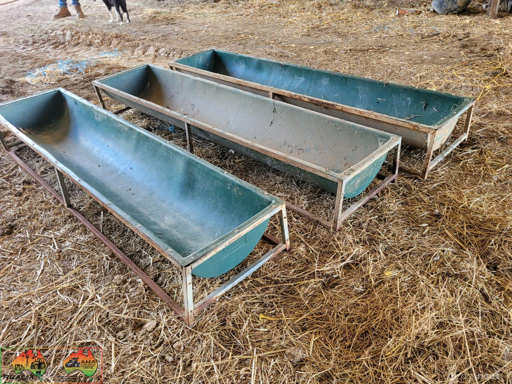 (1265) 3x Rapidplas 2.4m Poly Sheep/Calf Feed Troughs