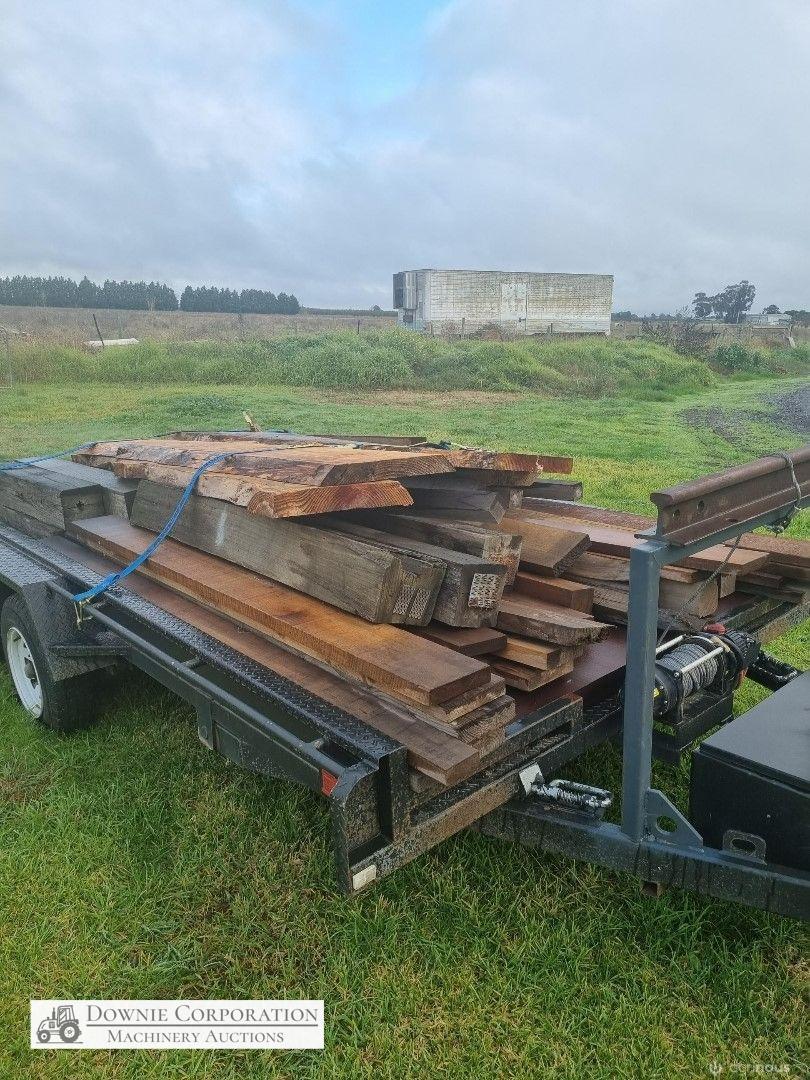 4 x Oregon Slabs of furniture timber, ideal for table or bench seats (other timber in photos is not included, just 4 slabs on top of trailer)