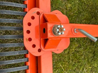 Dissy 3PL adjustable Stick Rake. 2.1metre (7ft) ~ HD tynes ~ Had very little use. ~ Comes with Euro hitch coupling & brackets for use as FEL pusher rake, ~ Presents near new condition