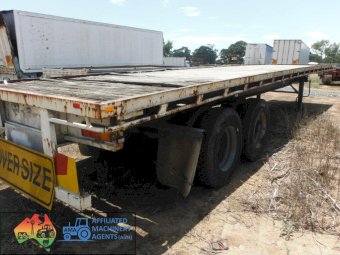 Barker Bogie Flat top trailer ~ Spring suspension ~ Timber floor ~ A fairly straight trailer ~ Ideal farm Hay/Grouper trailer