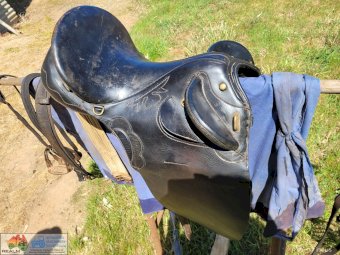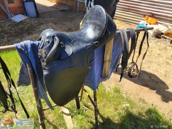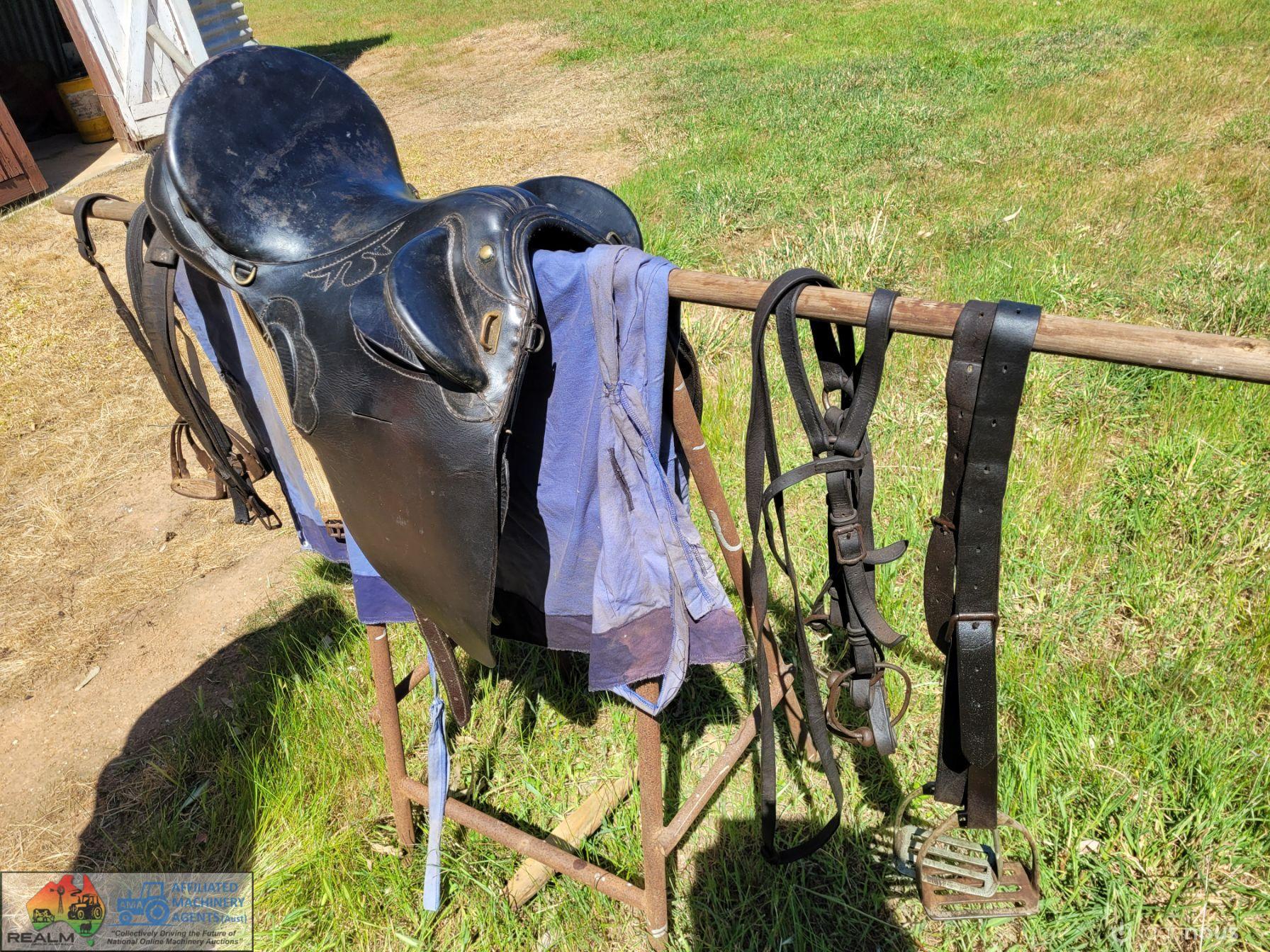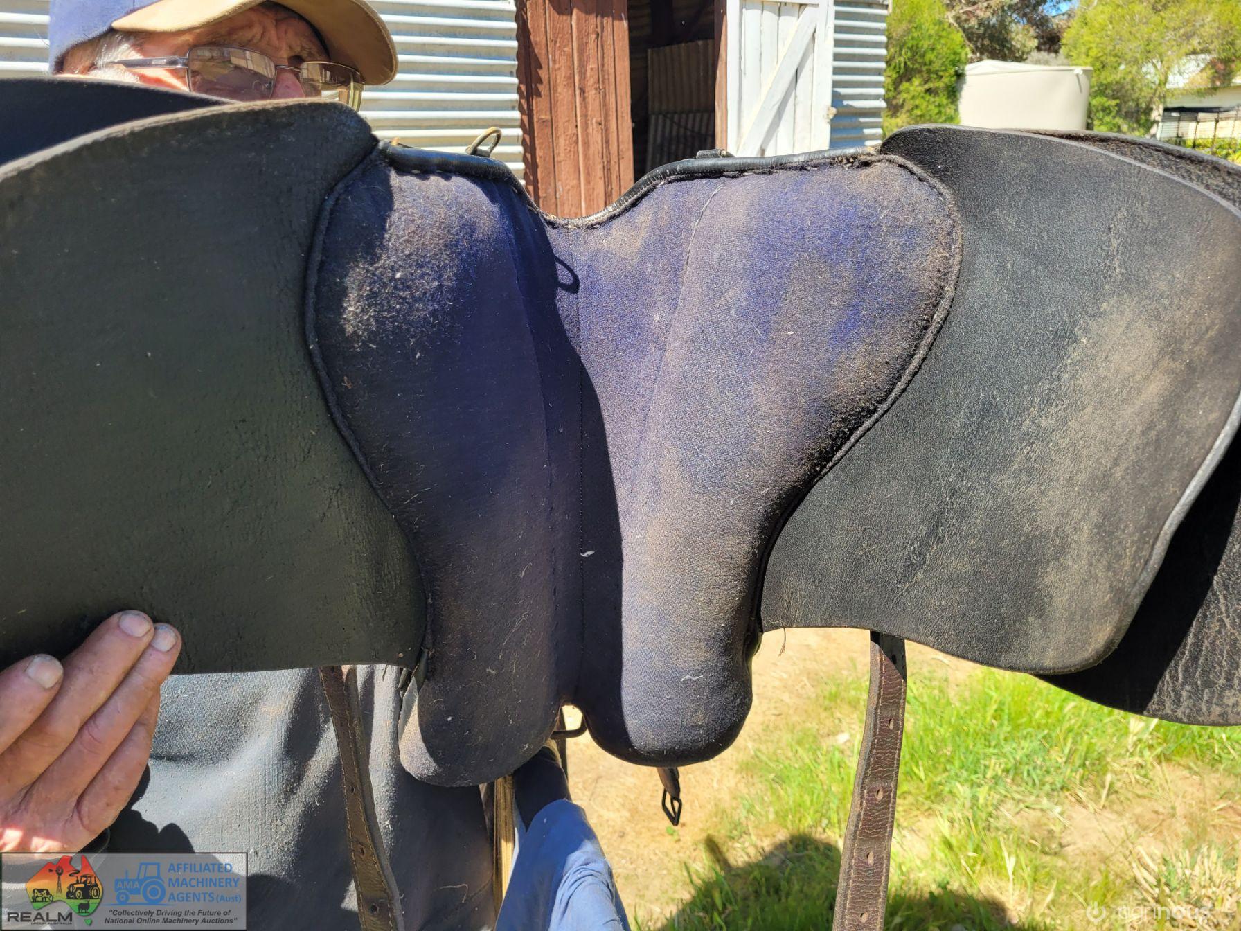 Black 16" Stockmans Saddle ~ Always well maintained ~ Good supple leather ~ Includes; Bridle, Stirrups, Rug, Rack (the lot as per photos)