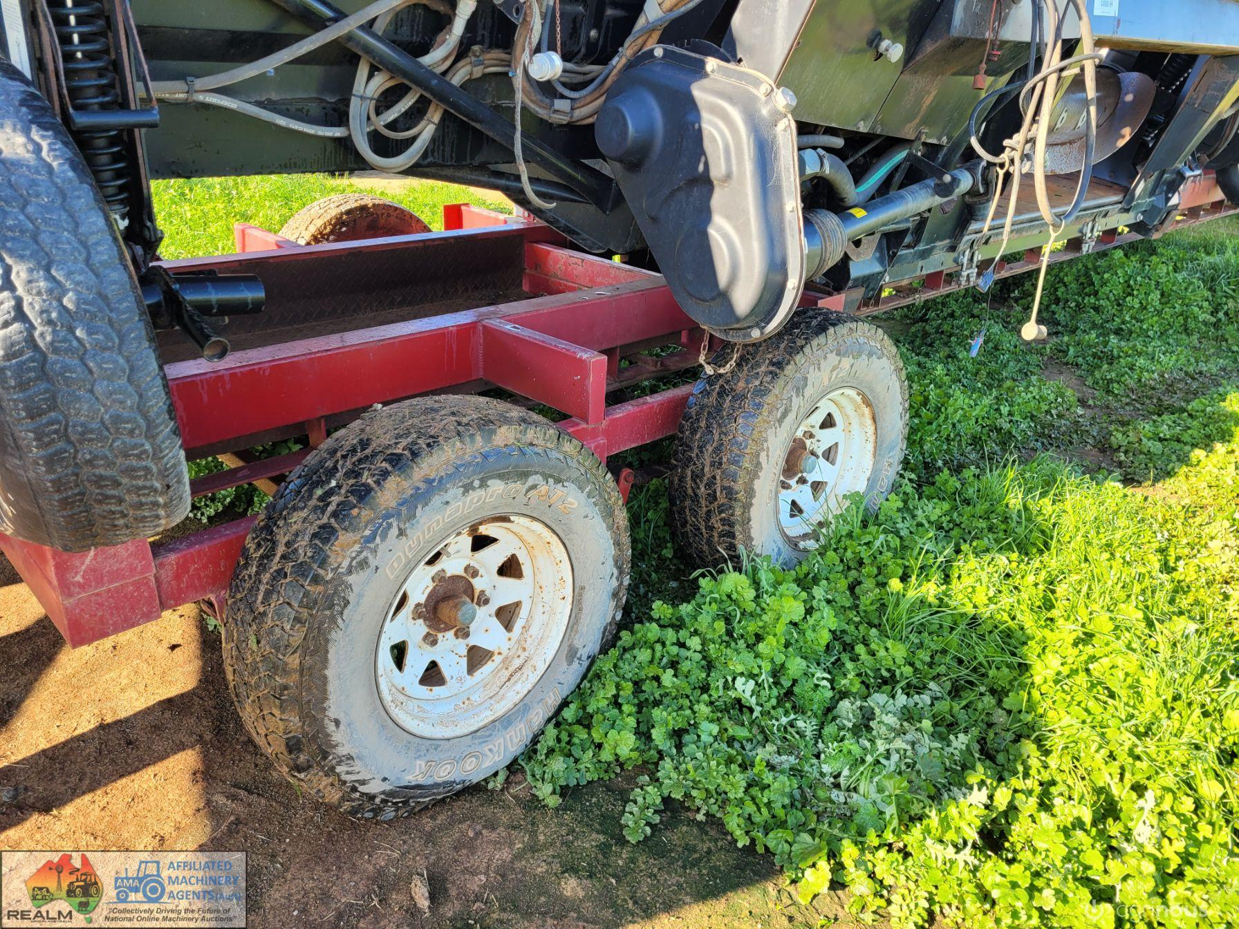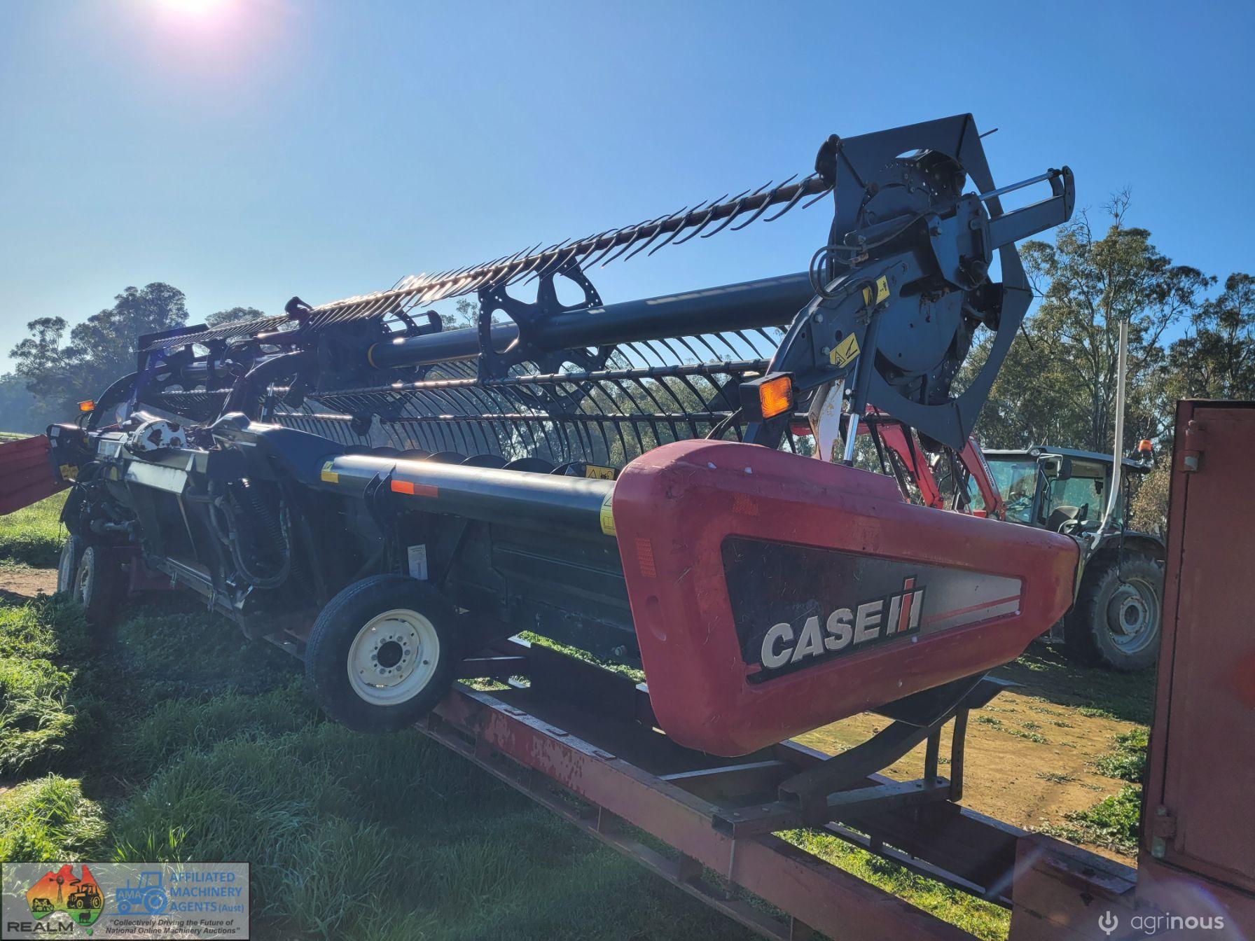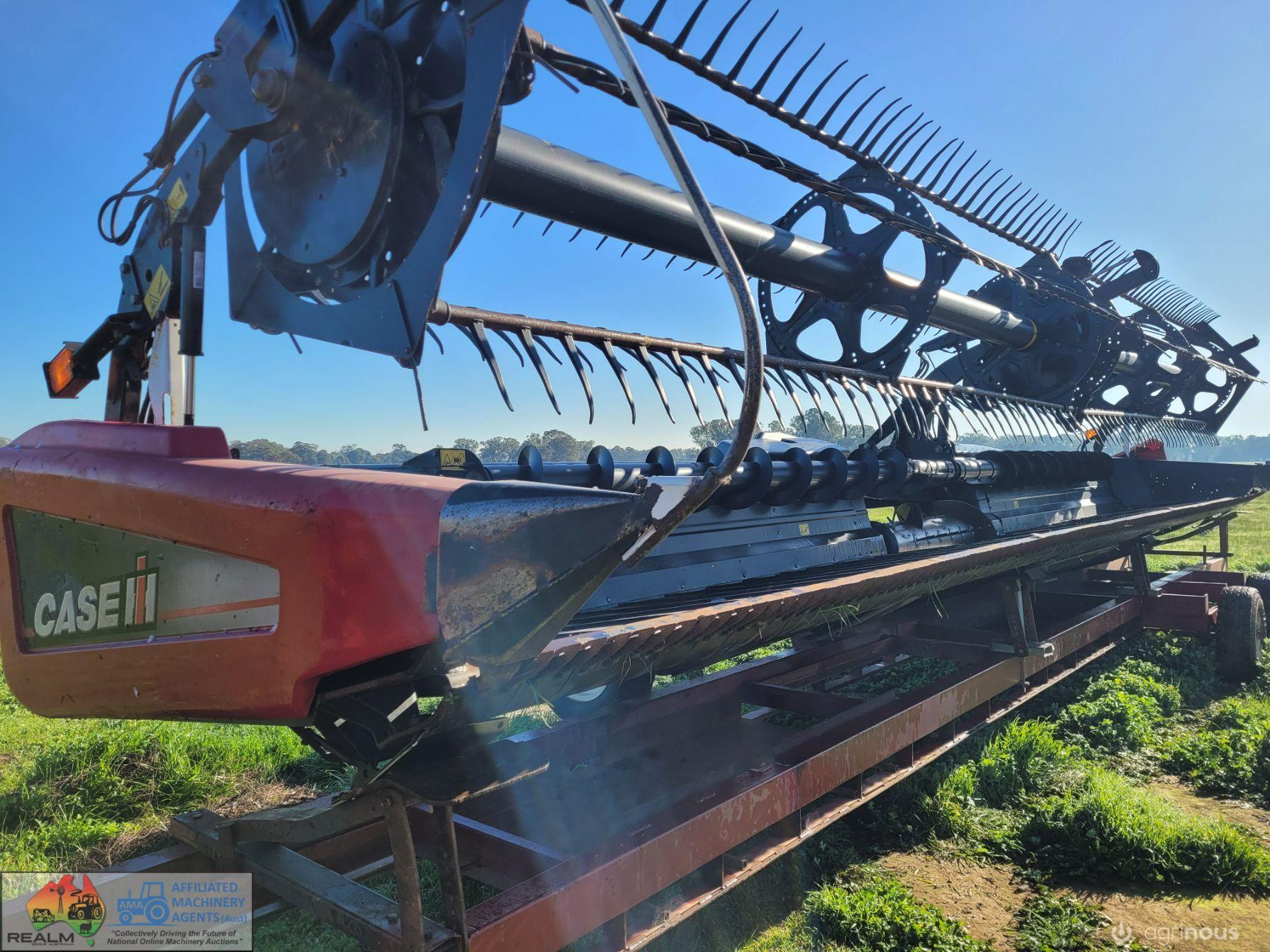 Case 2162-35 Flexi Draper Front ~ 35ft ~ Manufactured by MacDon ~ Good rubber belts ~ Cross feed auger ~ Exc. quality, hardly used ~ Minimal to no wear on skids ~ Solid well engineered comb trailer ~ Originally made for 39ft front, has been cut back (extra length included) ~ Ball race turntable ~ 15" Toyota wheels & tyres ~ Double sided lock-up tool box, for oils, parts & sundry tools. ~ This would suit a NEW BUYER's requirements.