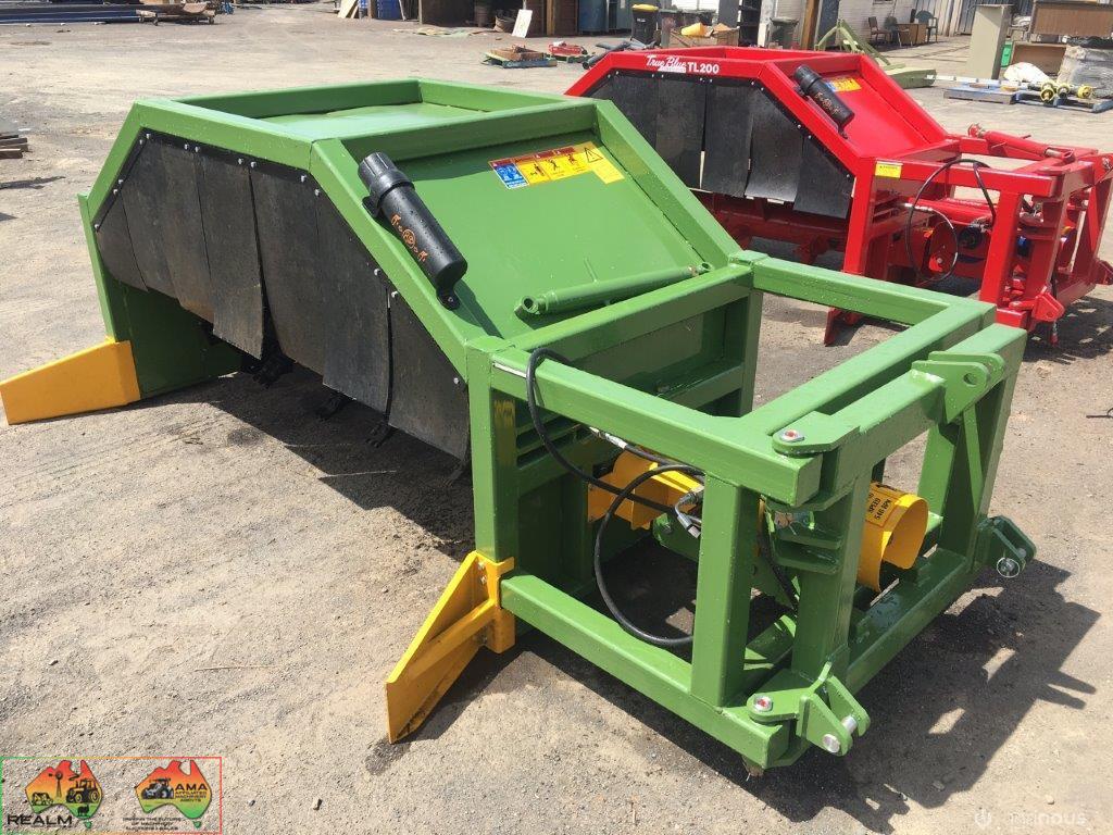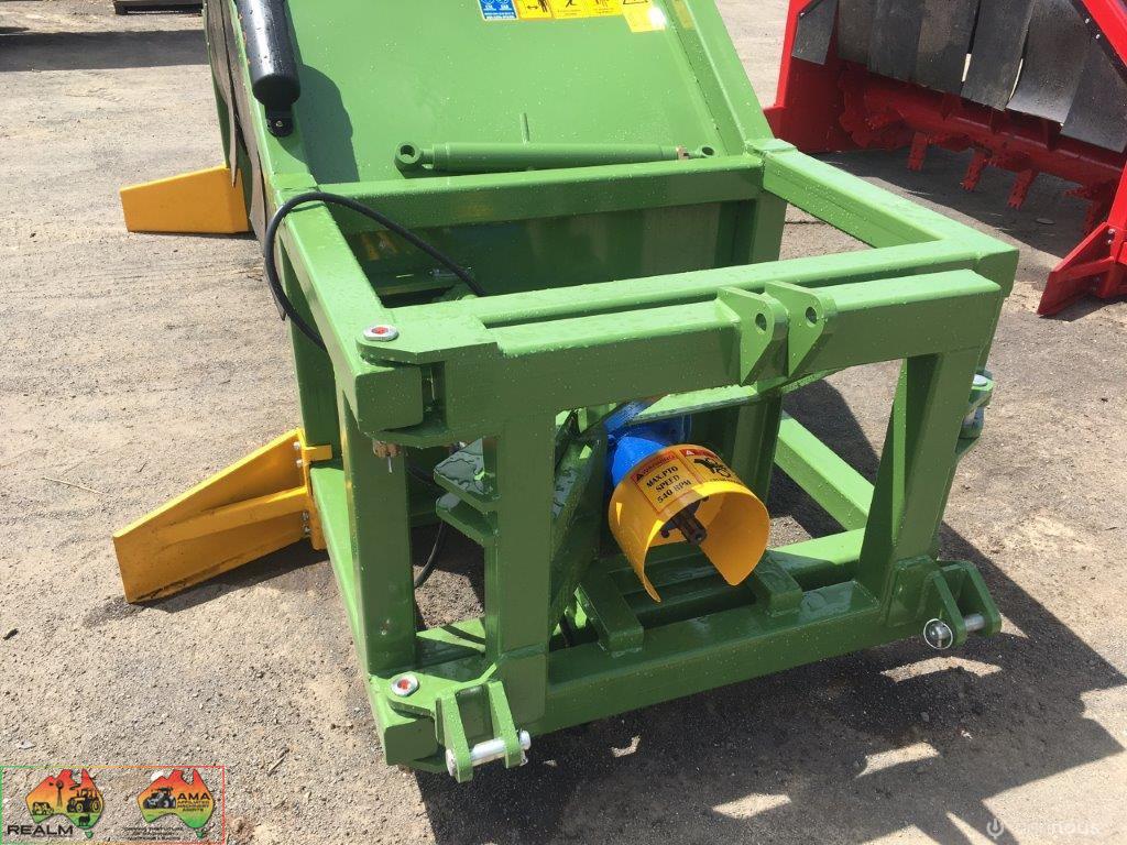 Can hydraulically fold behind tractor for transport.