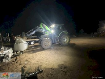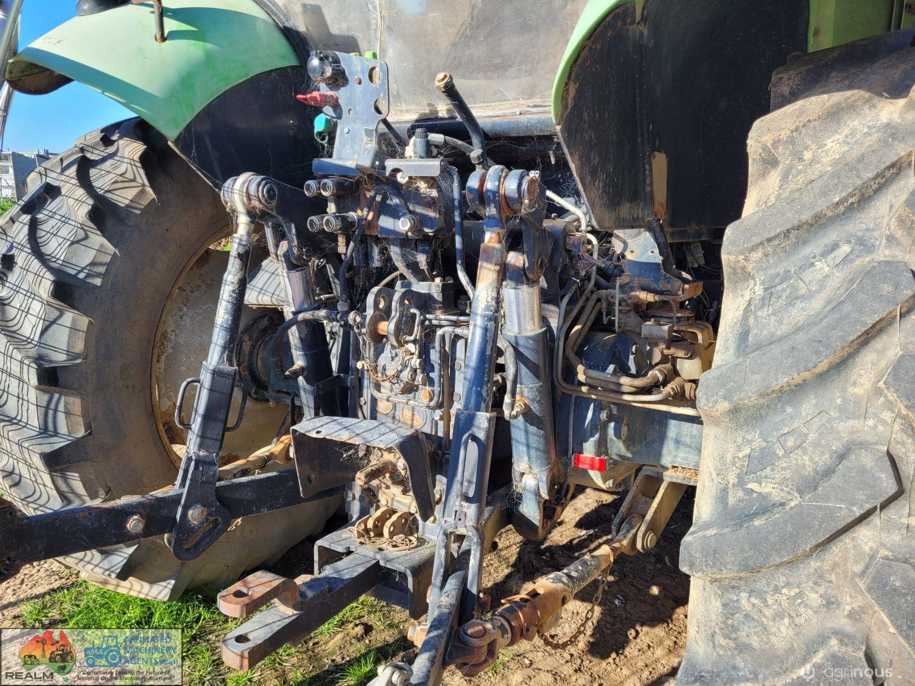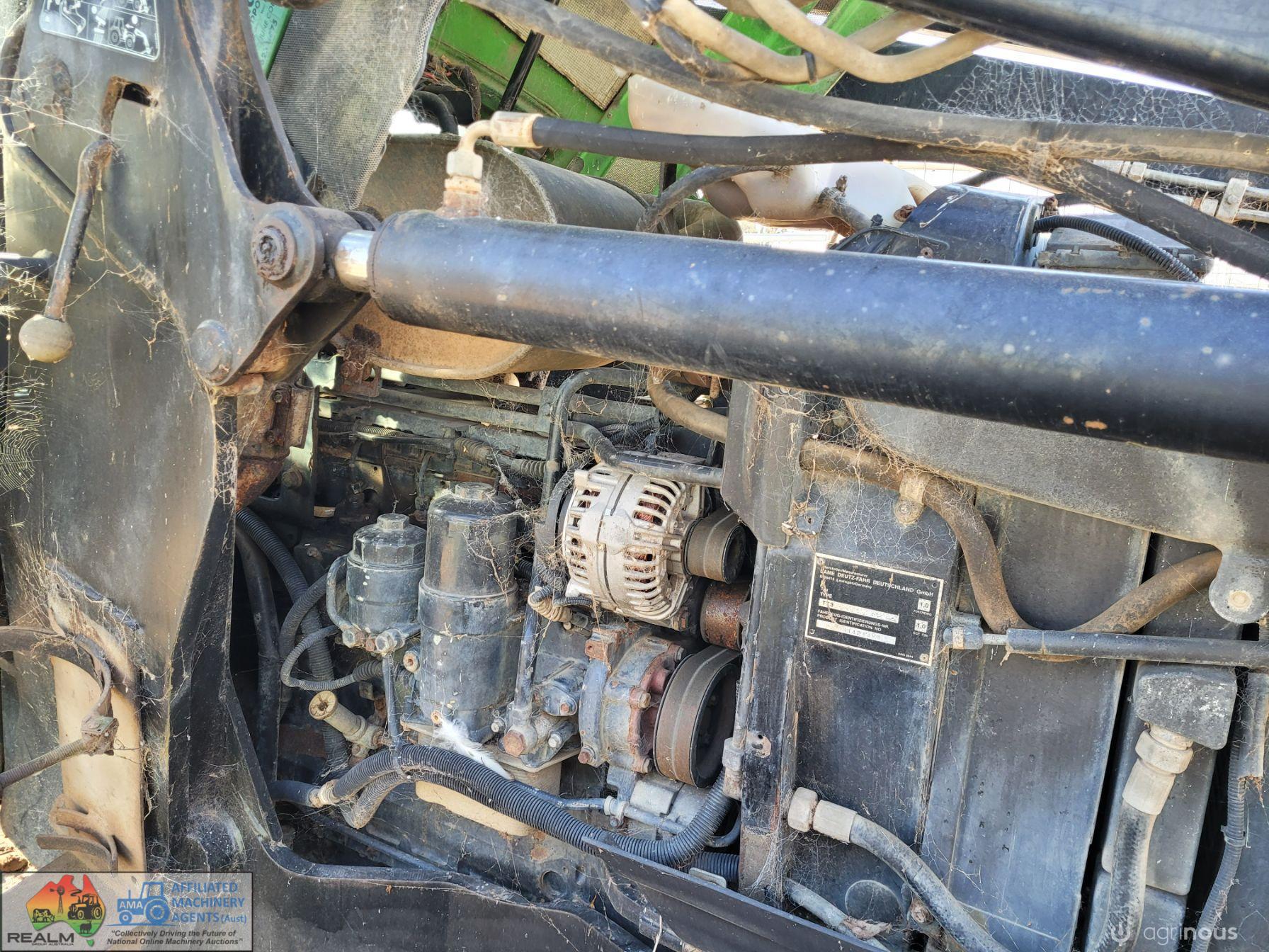 Deutz Agrotron 128Hp Tractor with Robust F35 level lift FEL ~ 6cyl Turbo diesel ~ 9,400 Hrs ~ Shuttle shift ~ Hay forks & 6ft bucket ~ Dual remotes, 3pl, 2sp PTO ~ Tyres R=75%, F=15% ~ Engine starts & runs well ~ New starter mtr & alternator fitted & now computer is showing Error #N91 (Faulty Creeper Mode), needs attention from qualified Deutz Dealer (possibly a faulty sensor) ~ NB: Tractor won't drive, but was working fine before fault ~ Suit repair or wrecking.