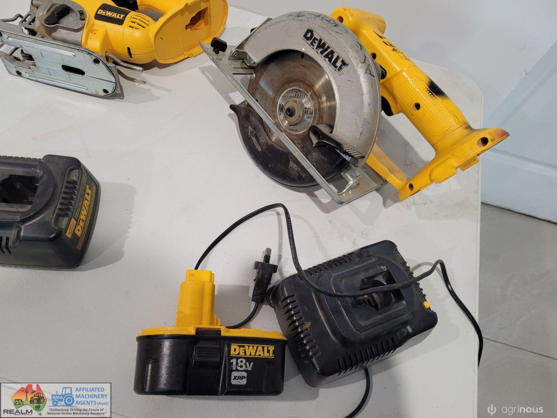 DeWalt 18v Cordless Tools ~ DW056 Driver ~ DC330 Jigsaw ~ DW939 Tungsten Saw ~ 2 Chargers & 2 batteries.