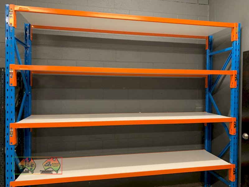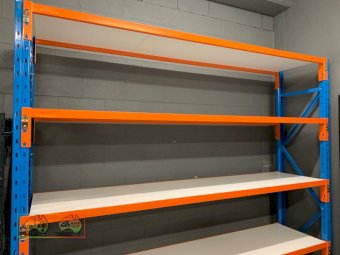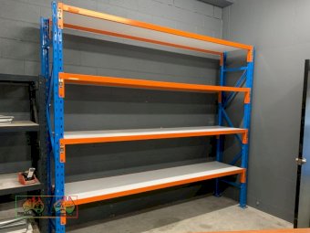 Dexion Double Bay, 4 Shelf Pallet Racking ~ 3x Blue uprights (2.4m x 838mm) ~ 16x Shelf Beams (2.59m) ~ 8x Melamine Shelves (2.59m x 838mm) ~ 6x steel footplates for frames ~ 8x Galv. mid shelf support brackets ~ NB: Successful Bidder will have the option to buy more, subject to availability ~ (Note: First 2 photos are stock images only) ~ Payment DUE within 24 Hrs of Invoice ~ Sold as-is, prior inspection recommended. ~ NB: This item will have 10% GST added. ~ A Buyers Premium of 5% (+GST) applies to all Lots. ~ If you wish to enquire further about our listings, please call Michael on 0458 241 242 or email michaeld@amasales.com.au