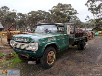 Ford F600 Tray Truck ~ V8-Doesn’t run ~ Solid old truck that has some rust ~ Would look great fully restored. (NB. items on tray not included)