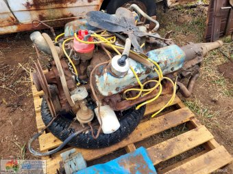 Ford Windsor V8 Engine & Auto Transmission ~ Probably 302cu (not sure) ~ Has been stored in shed ~ Turns over by hand (Not seized) ~ Removed from XY Ute (see Lot.8)