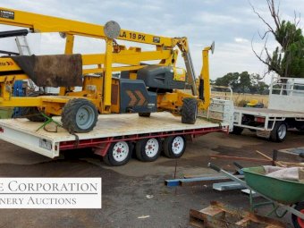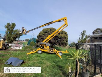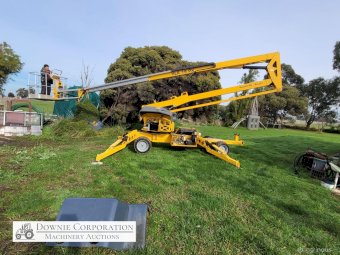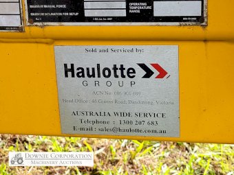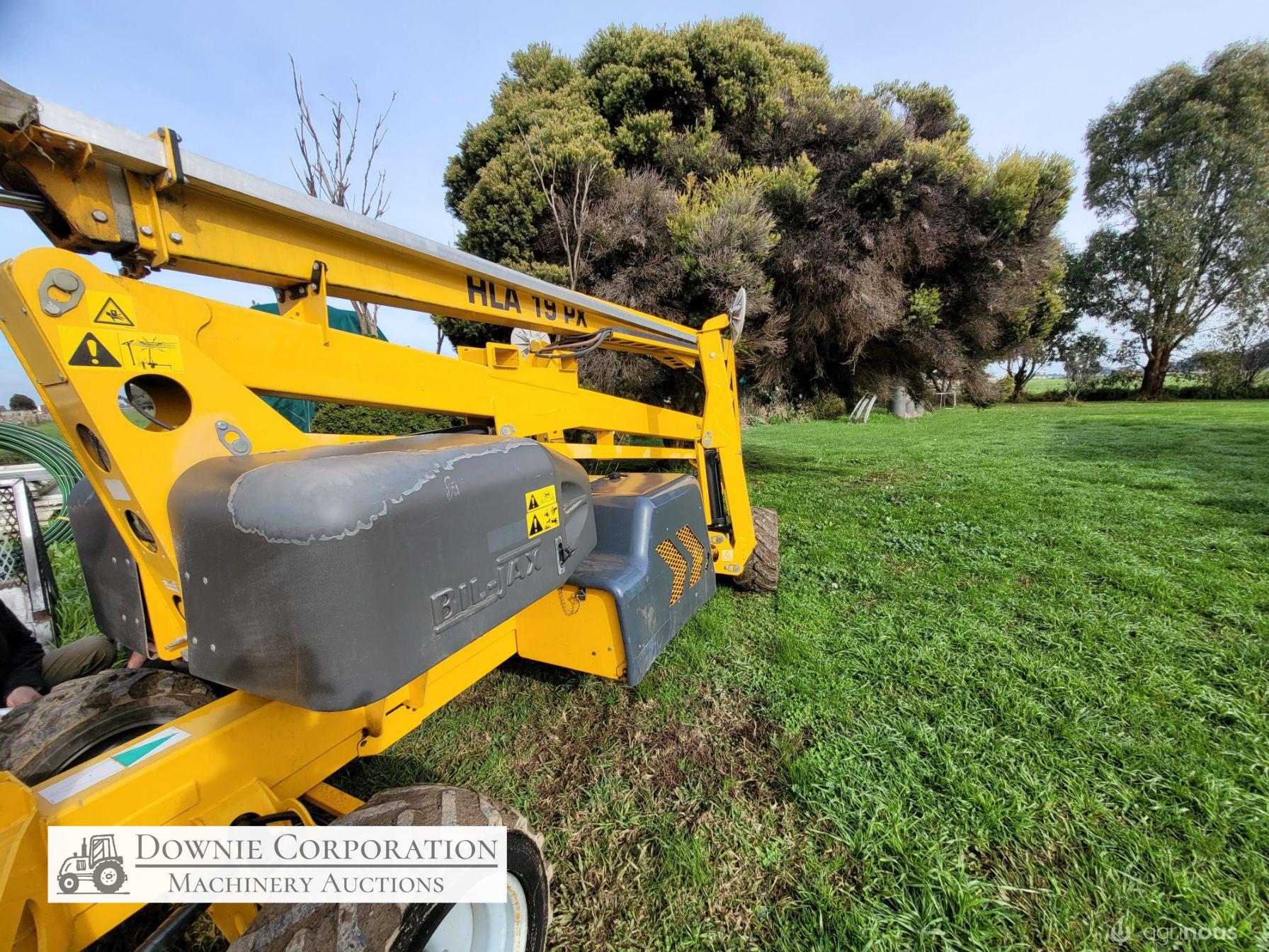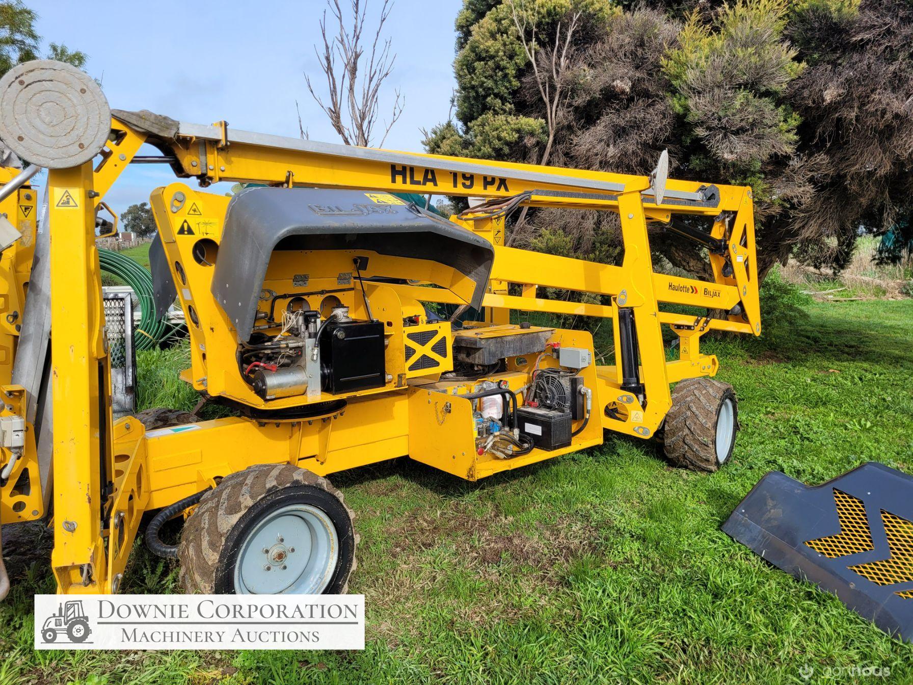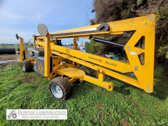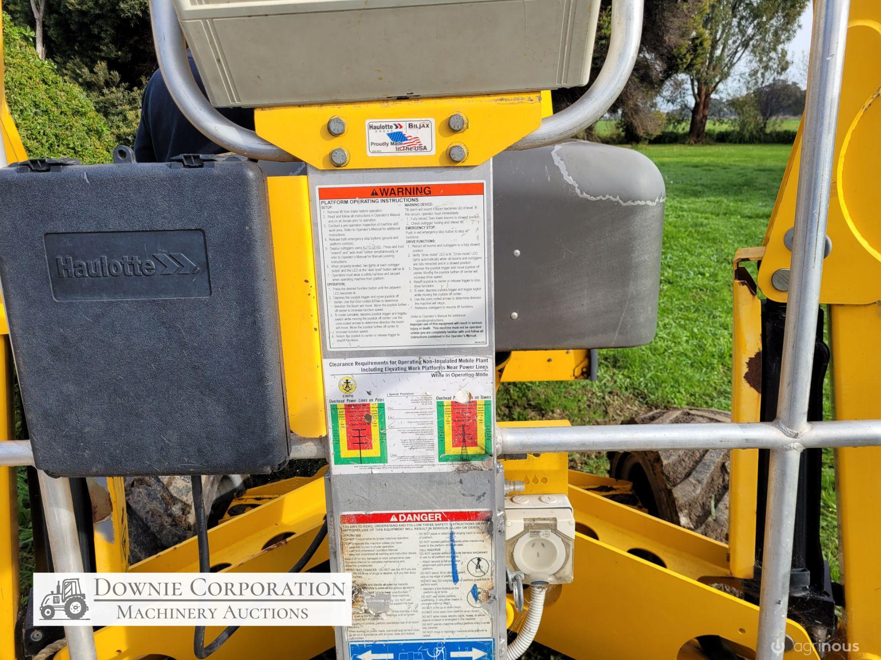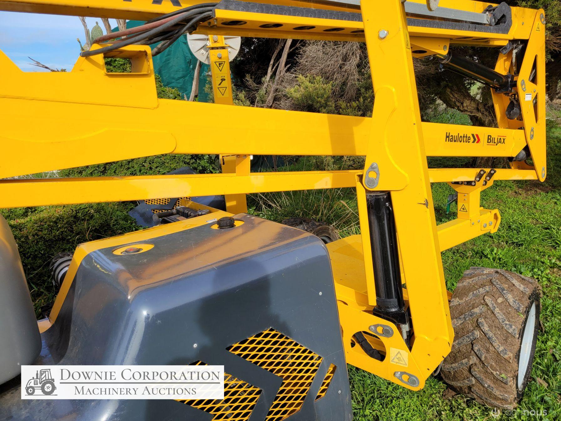 Haulotte Bil-Jax Boom Lift; Serial No. 55X1100010; 3cyl 22Hp Kubota diesel with 4 as-new Deep Cell batteries; Platform max height = 55ft (16.8m), max reach = 33ft (10.2m); Commissioned 29-10-2014, has current Vic. Certification (for safe use) V1000156; Tyres = 90%; Recently had complete service; New computer sevcom control box; New upsized (high vol) Hydraulic pump fitted.