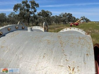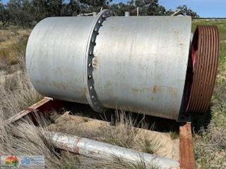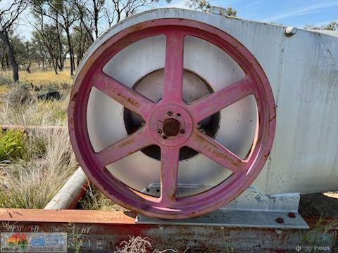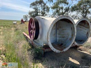 Hume Colville 48" Flood Pump ~ Ex Lake Tandou Farm ~ Fenner 4ft diameter ~ 8 run belt drive ~ On 15ft x 8'8" pump stand ~ (NB: No motor ~ No belts)
