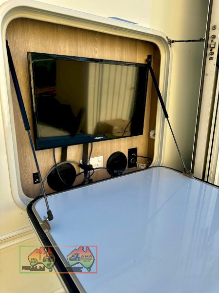 Here's the ultimate courier for touring Aussie. ~ Avida Esperance 3ltr twin turbo, ~ full leather. ~ sleeps 4. ~ separate lounge dining. ~ full ensuite. bathroom vanity. ~ 187 ltr fridge 2 door. ~ 32" TV ~ Diesel heater. ~ extra usb ports throughout. ~ sirocco fans. ~ A/c throughout, ~ 2 x 150 amp inverters. ~ 450 watts solar. ~ sat King. ~ external TV, stereo, ~ tinted windows, ~ Ziggy BBQ. ~ 2 x 105 AH batteries. ~ front privacy screen. ~ Awning and ground mat, ~ Blue ox tow pack. etc etc rego til Oct.