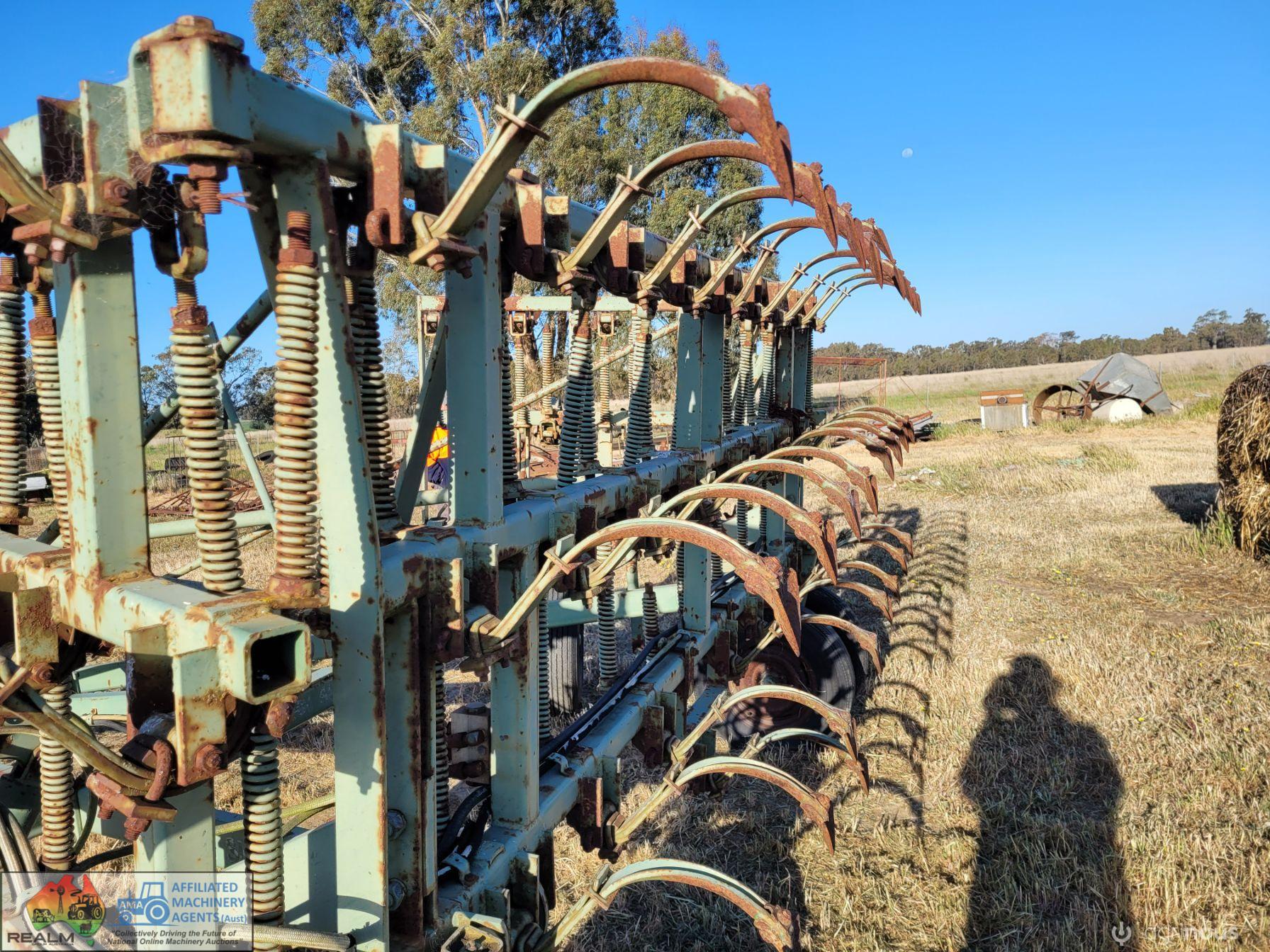 John Shearer Mk3 Fieldspan Cultivator ~ 23ft working width ~ 54 Tynes at 5" spacing ~ Later model unit in Good condition with Hydraulic ram.