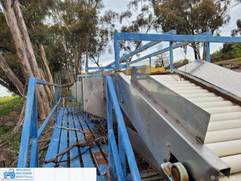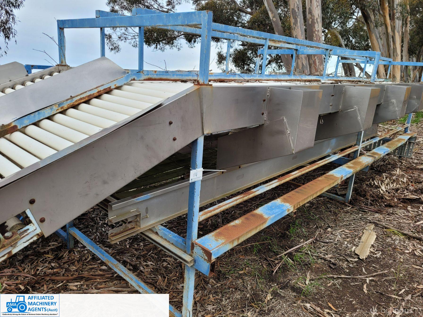 Large Sorting Table with 900 x 5.8m bottom conveyor & 1.6m wide x 7m chain driven roller