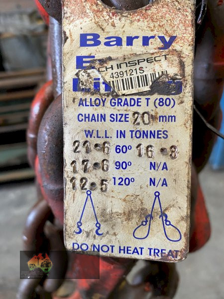 2 sets of 2 drop x 21 tonnes by 8.5 metres with shortners. Buyer needs to have certified and will be sold as scrap on invoice