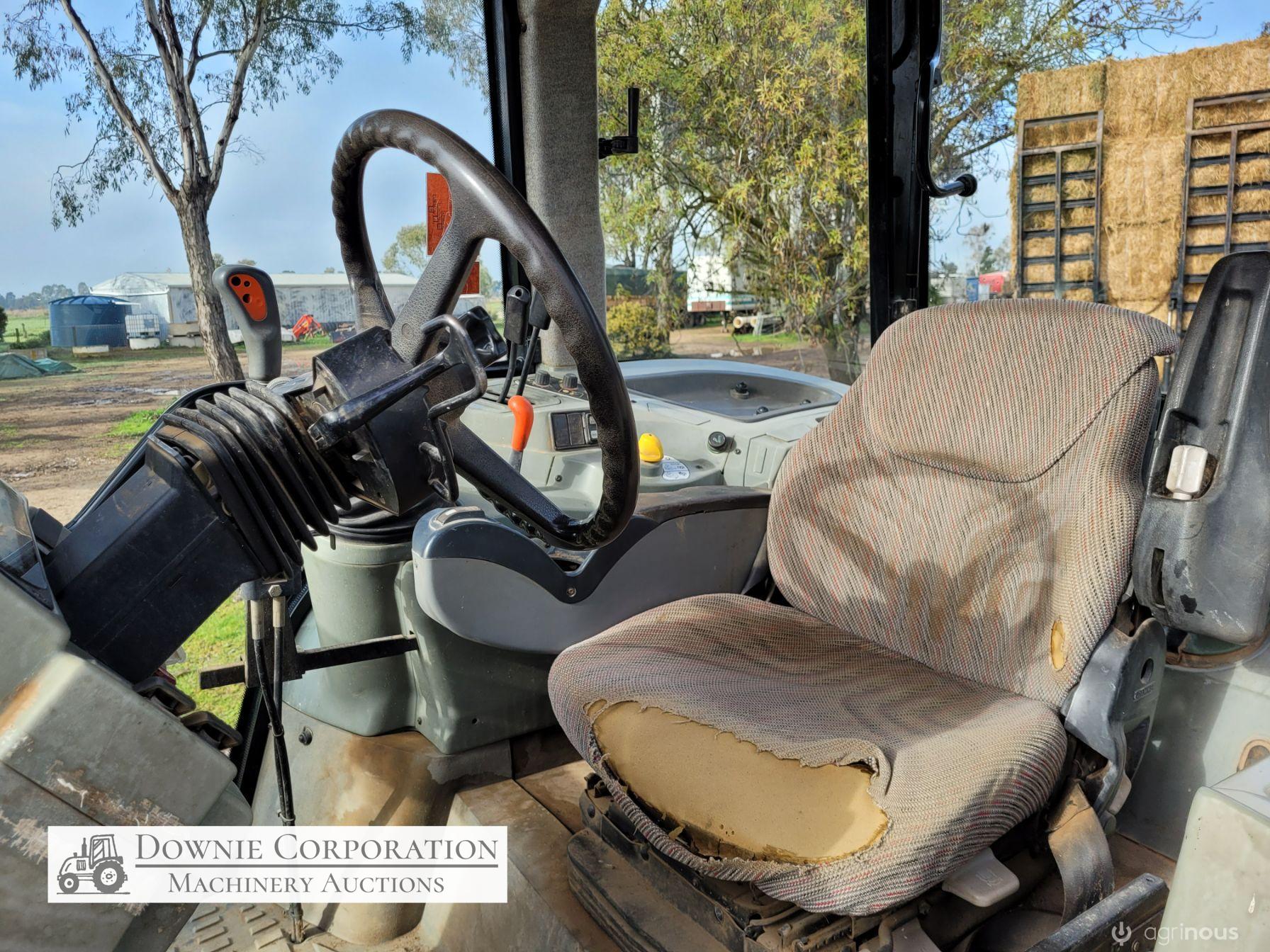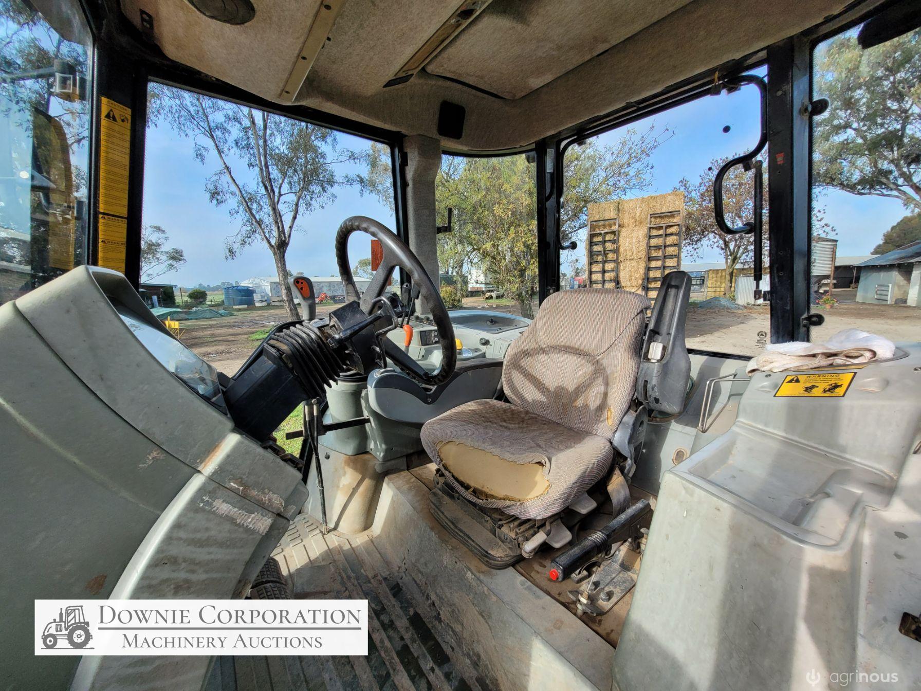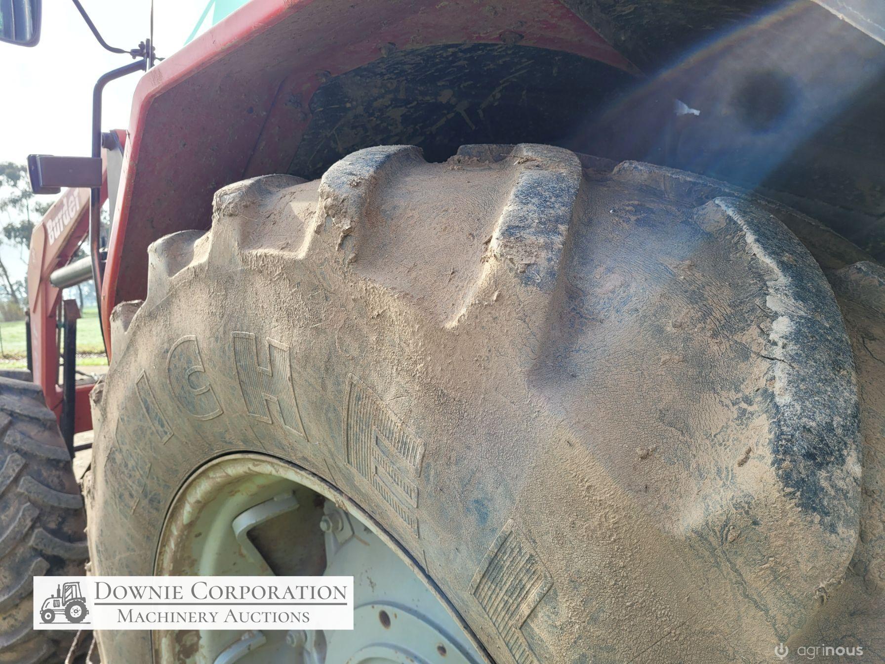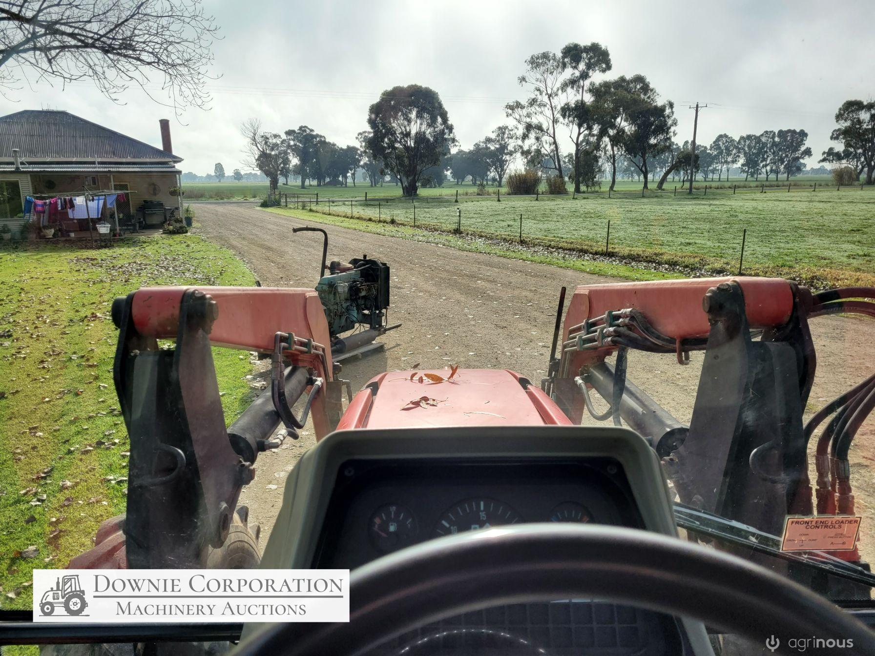 2007, MF 6290 FWA 120Hp Tractor with Burder 9050XP FEL forks only (no bucket); 6cyl diesel engine showing 9,231 Hrs. 32sp power shift transmission; A/c cab (works but may need re-gas); 3pl; Dual remotes; Tyres F=90% R=40%.