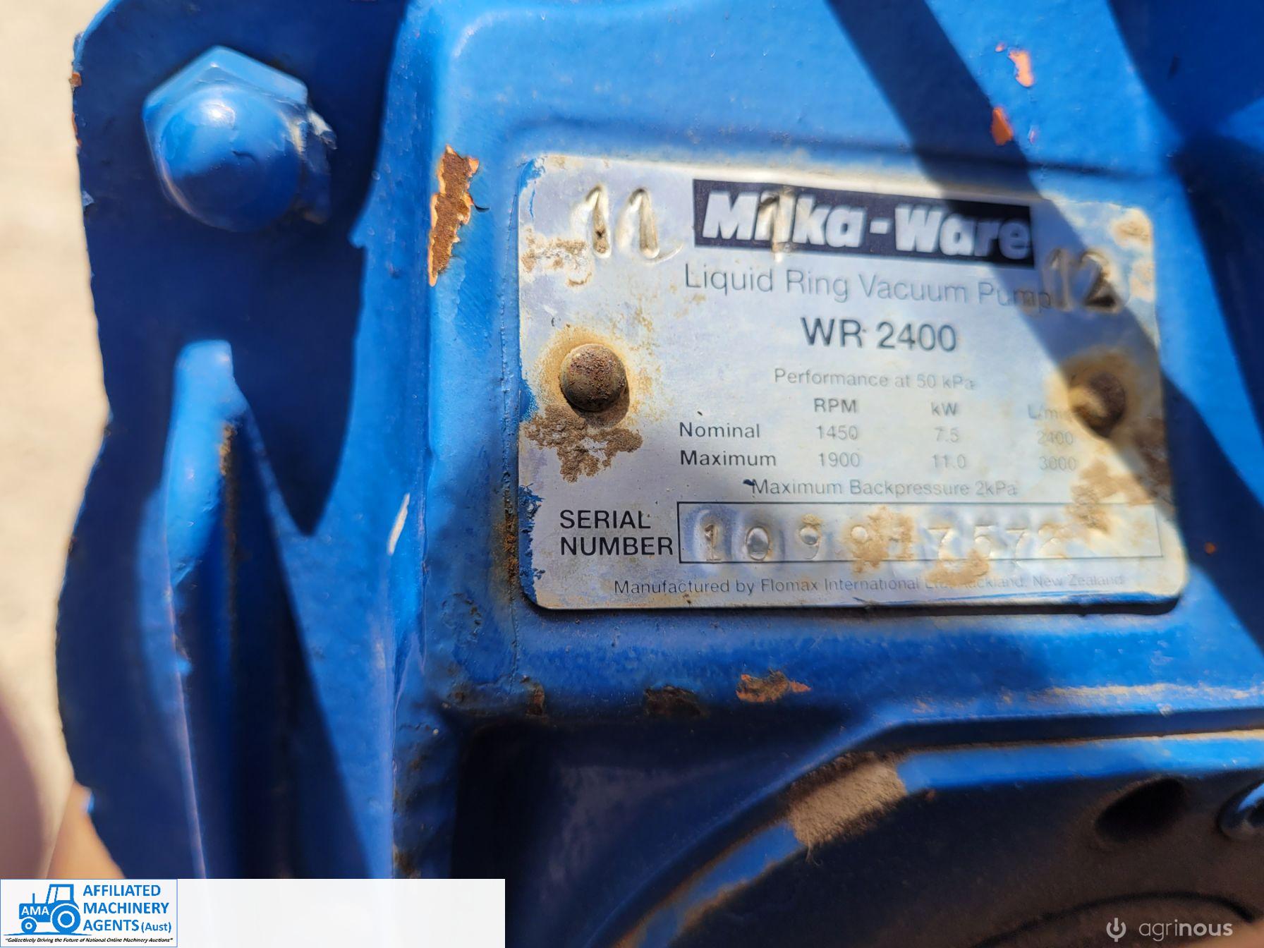 Milka-Ware WR-2400 Vacuum Pump ~ As new ~ with 10Hp 3 Phase electric motor.