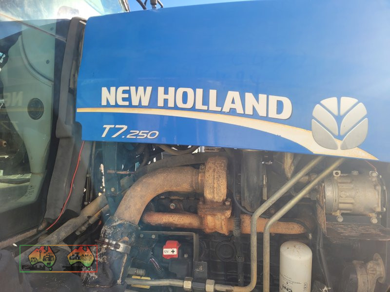 New Holland T7-250 FWA Tractor ~ 250Hp ~ 6.7Ltr, 6cyl Turbo diesel engine ~ 8,579 Hrs ~ Full GPS Auto steer ~ 4x Remotes ~ 3pl ~ PTO ~ A/c cab ~ Currently fitted with purpose built Row-crop rims & Radial tyres F=85R34, R=90R50 ~ These tyres are 85% tread ~ (NB: Original rims & tyres included F=70R30, R=70R42) ~ 5% Buyers Premium & GST will be added to sale price ~ Contact Contact Robbie Mckenzie 0413 700 988