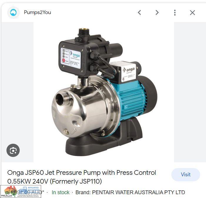 New Onga JSP60 Pressure Pump ~ Un-used, still in box ~ (RRP $1,190)