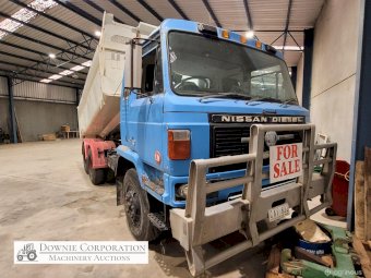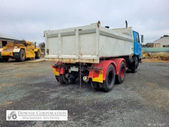 Nissan UD Bogie Tipper, with 14ft solid gravel body. 285Hp turbo 6cyl diesel engine & 15 speed road ranger gearbox, heavy duty diffs & suspension. Engine was reco 15 years ago, but only had minimal use since. Speedo reads 458,327 Kms. Has an Extra-Cab (sleeper), good lights, brakes etc. Air operated PTO hydraulics & tailgate. Alloy bull bar. 10.00R20 Tyres. A good sold well looked after unit. Sold un-reg, but may be suitable for re-registering or a good quarry/station truck.