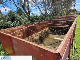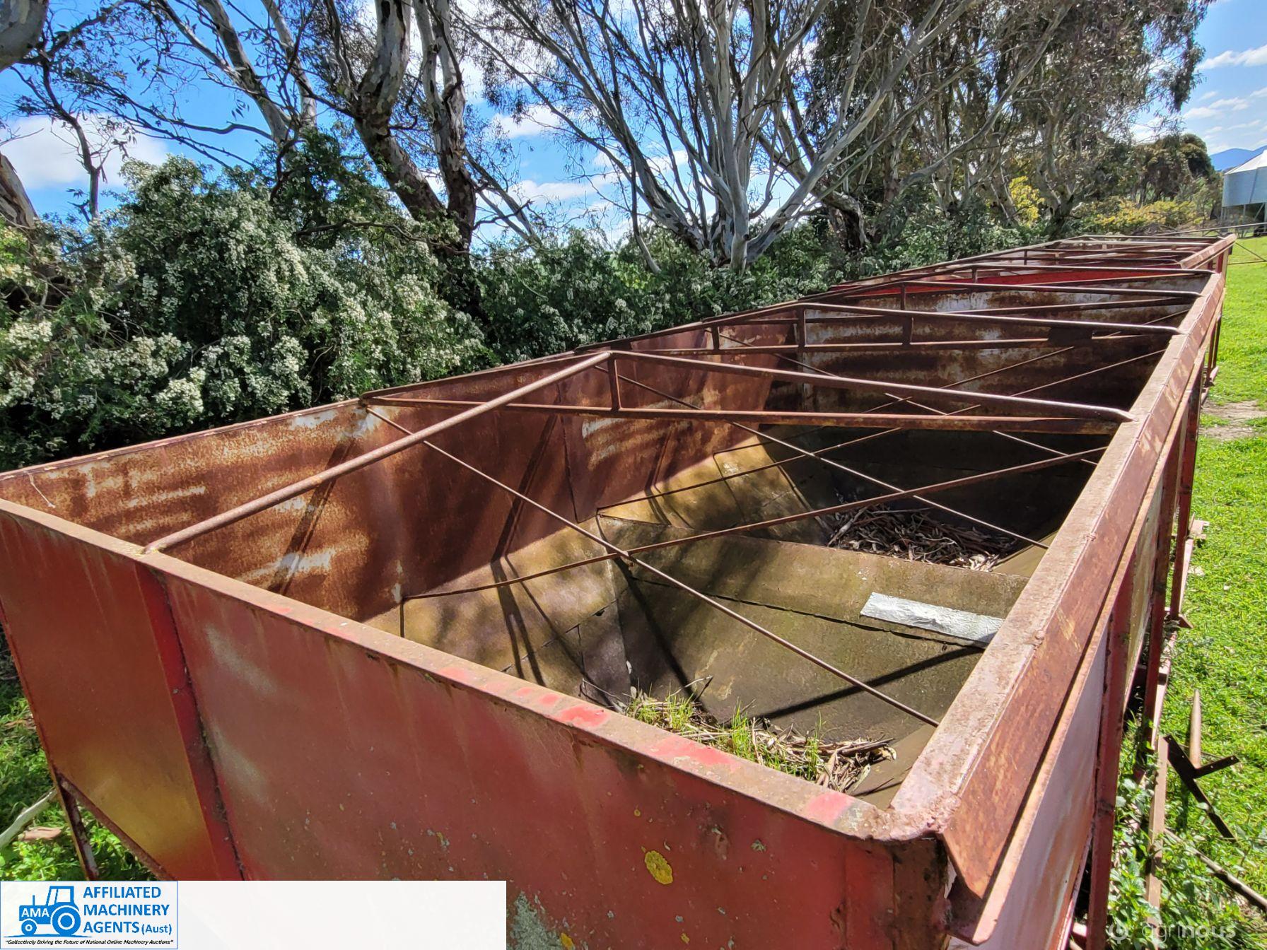 Pair of Grain Bins to suit 32' flat top trailer - Centre dump, in good condition - Roll over tarp.