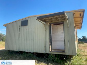 Relocatable School Class Room ~ on steel girder sub-frame ~ One open plan room with part-divider ~ Make an ideal Worker's Smoko room, or Teenager's Billiard/Games room.