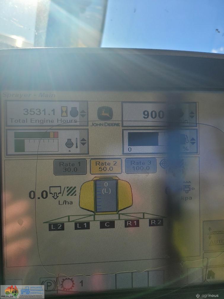 John Deere 4630 Self Propelled Sprayer - 3531.6 hours currently. Stainless steel mixing vat, tri- body spray nozzles, turbo timer, separate wing tip fold and boom tilt, 5 section boom, always shedded when not in use, 24m but really covers 25m, also has extensions on first boom that covers 19.6m with wing tips still folded up. Computer is included as per photos – NO GPS receiver.