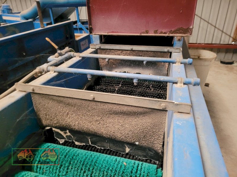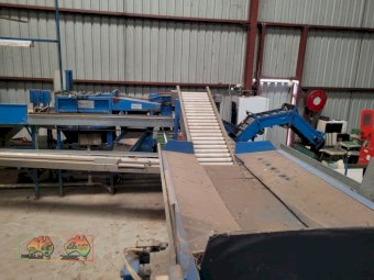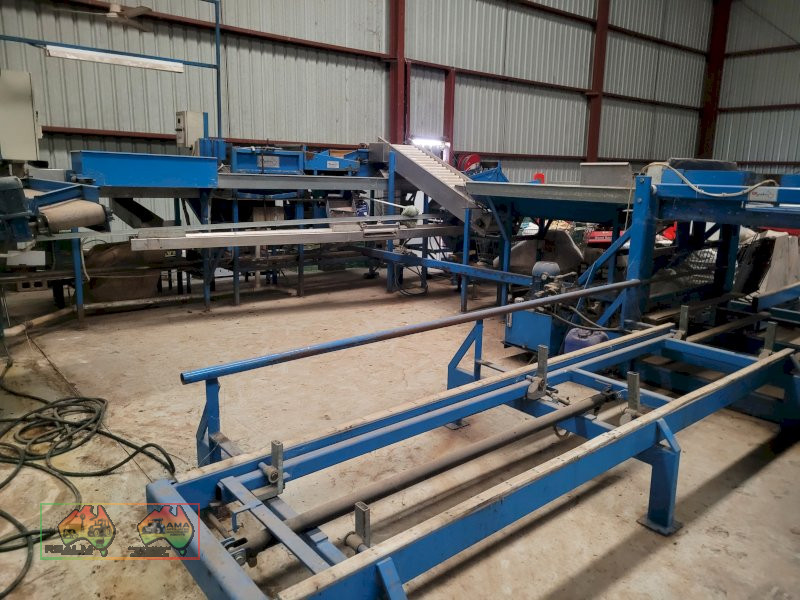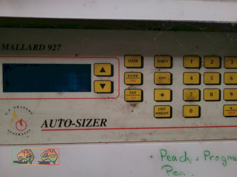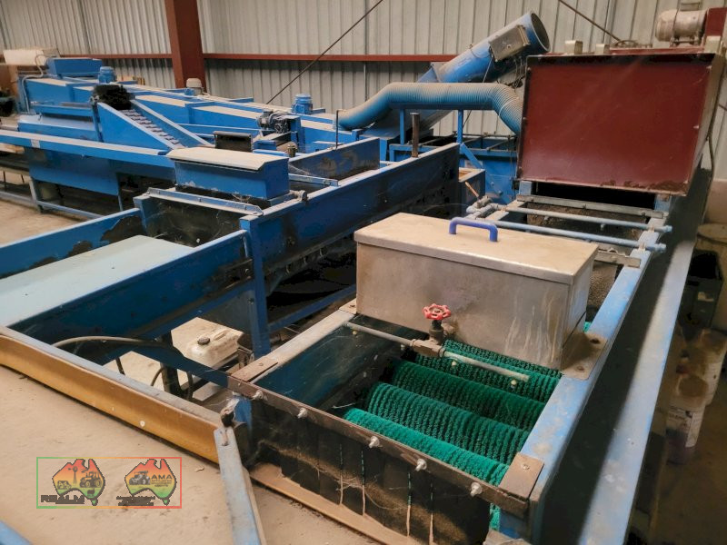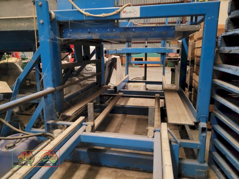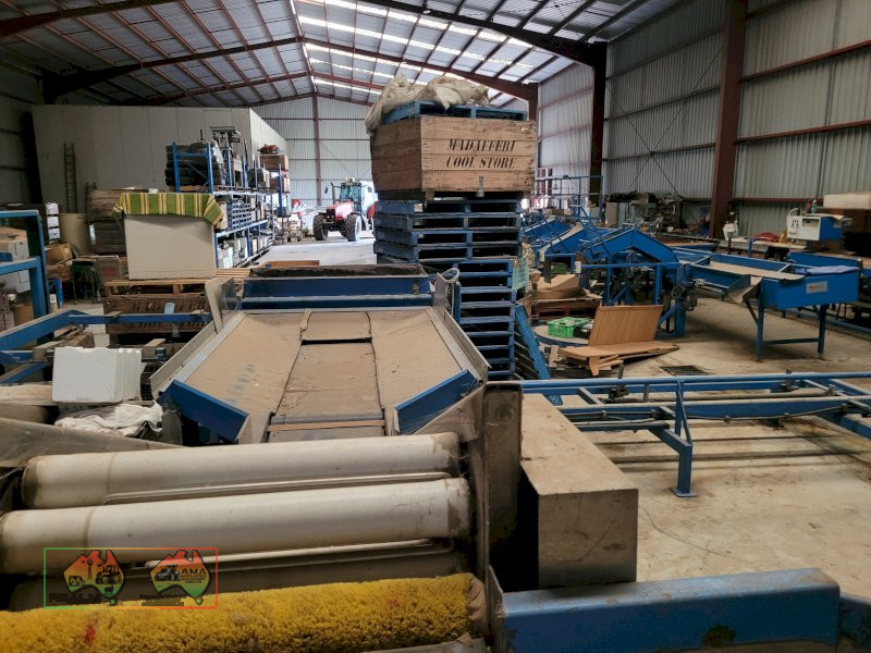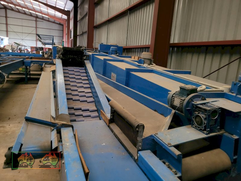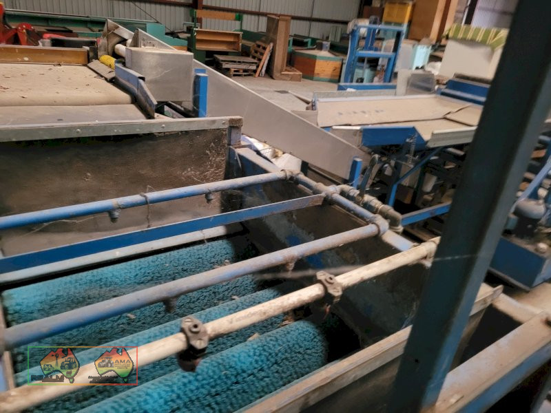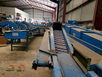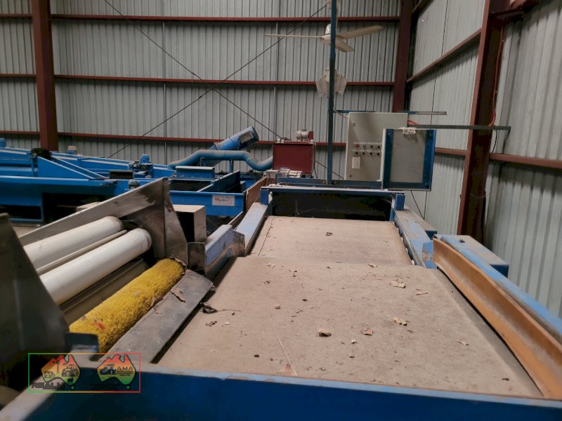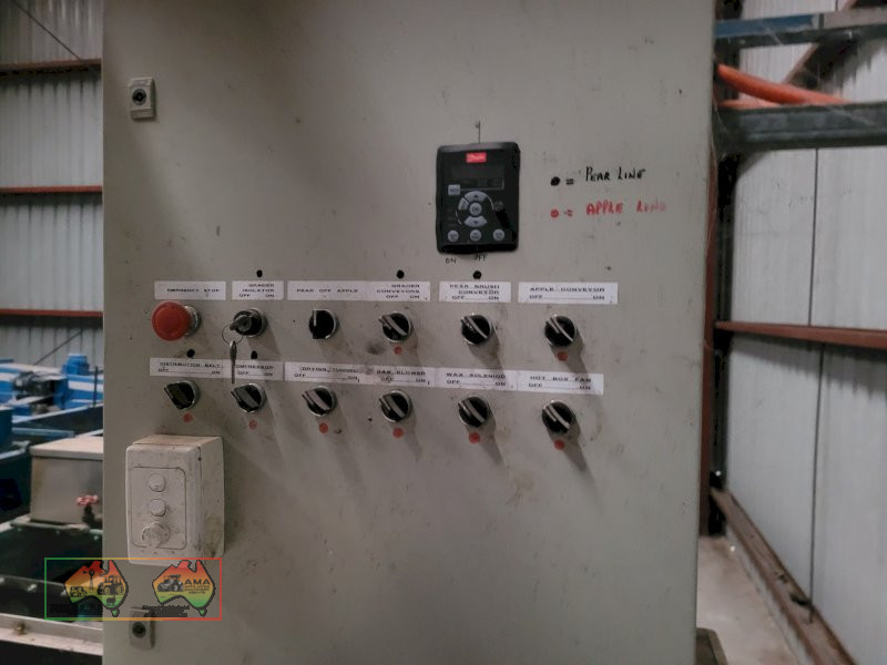 Single Row Pomme Fruit Grader ~ Manufactured & installed by GP Graders ~ A complete system from Bin Tipper & Stacker, to wash, scrub, dry & waxing ~ Computerized sorter based on fruit weight ~ Label station ~ Numerous pack-out stations ~ This is a complete functioning system, well serviced & in good operating condition.