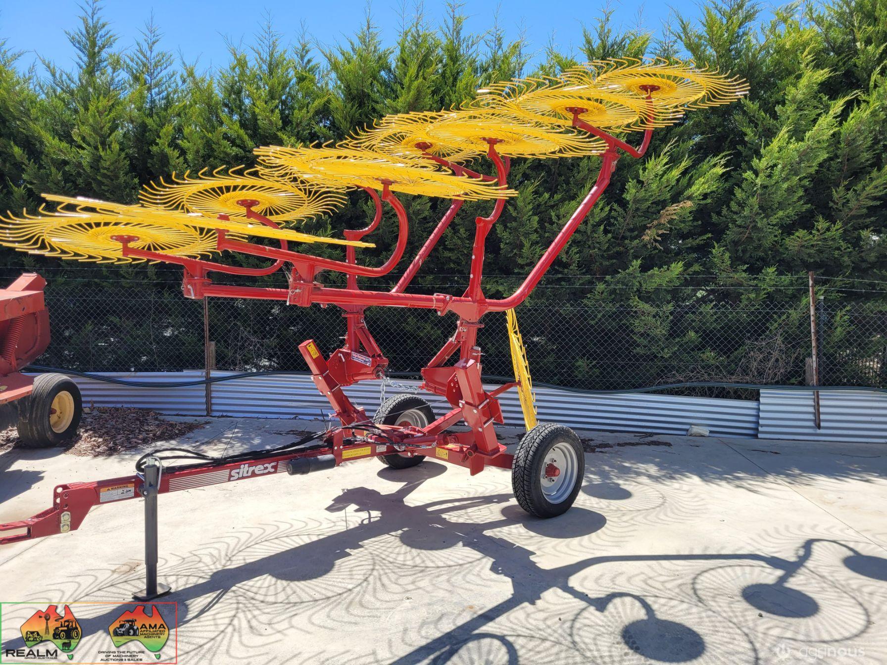 Sitrex Vee-10 Trailing Hay Rake, with Splitter ~ New (Un-used) ~ Shop soiled condition (sun faded) ~ Suit NEW BUYER