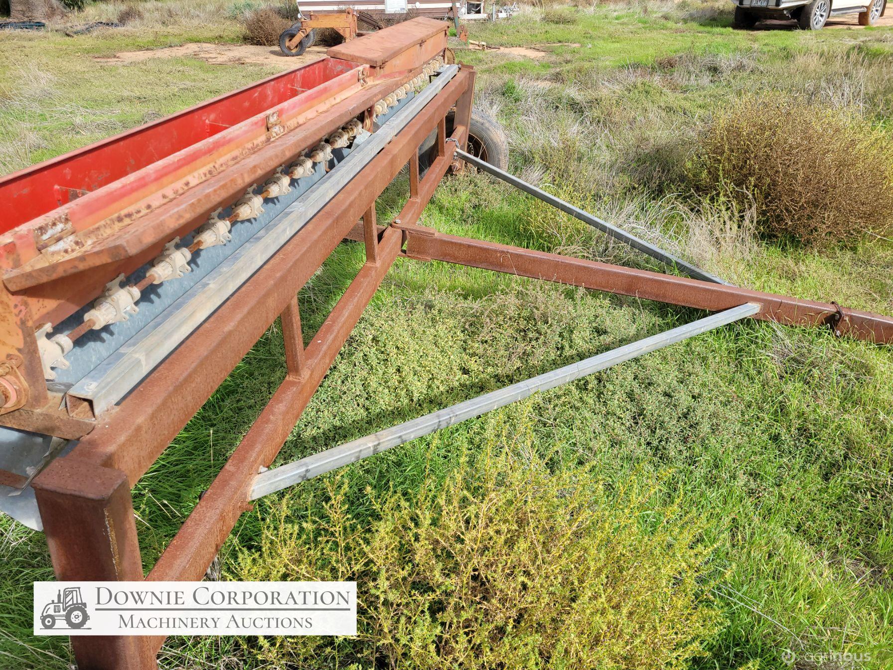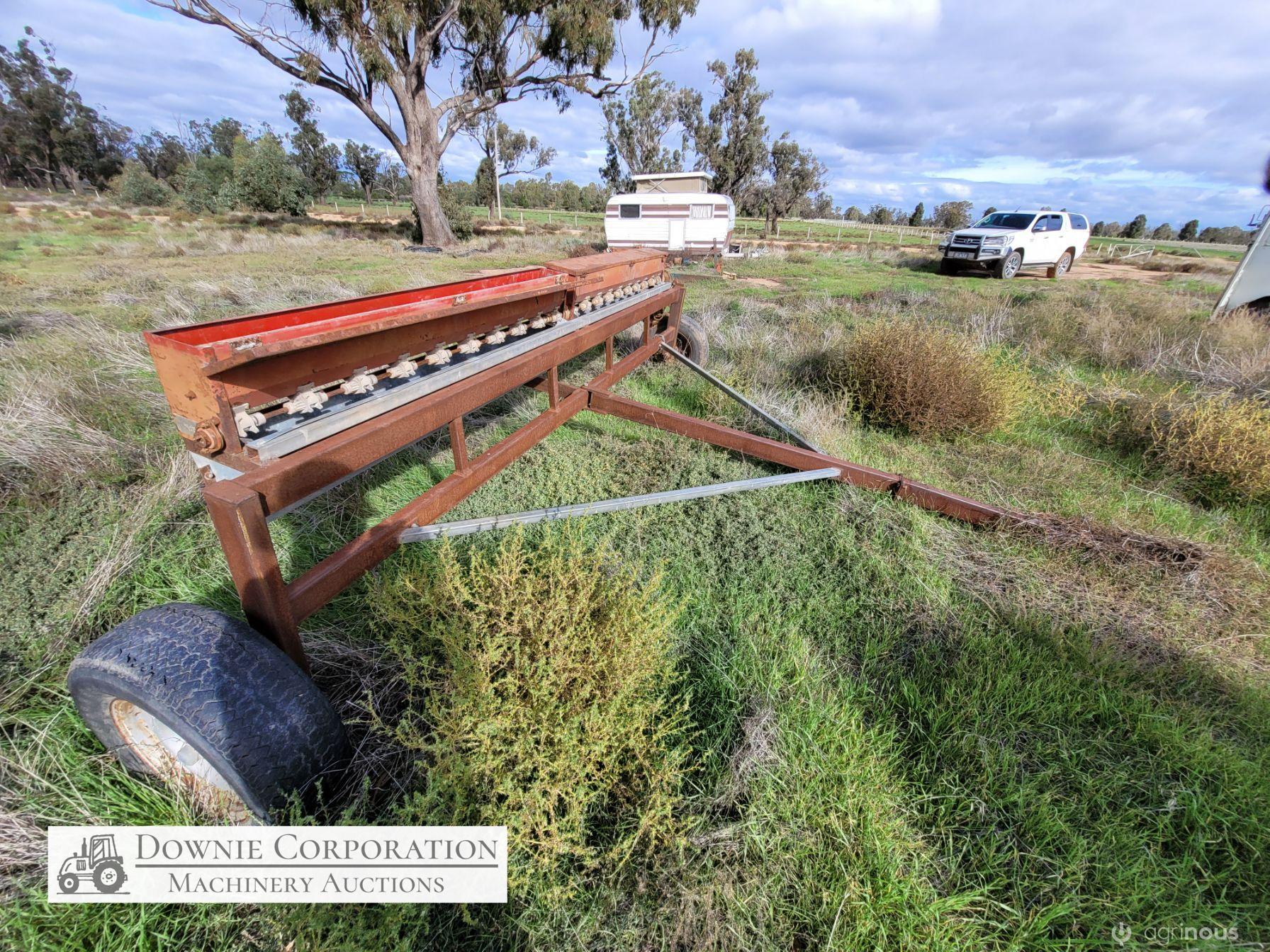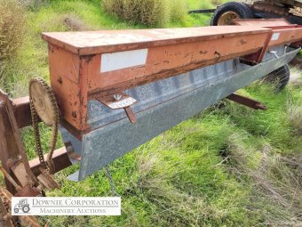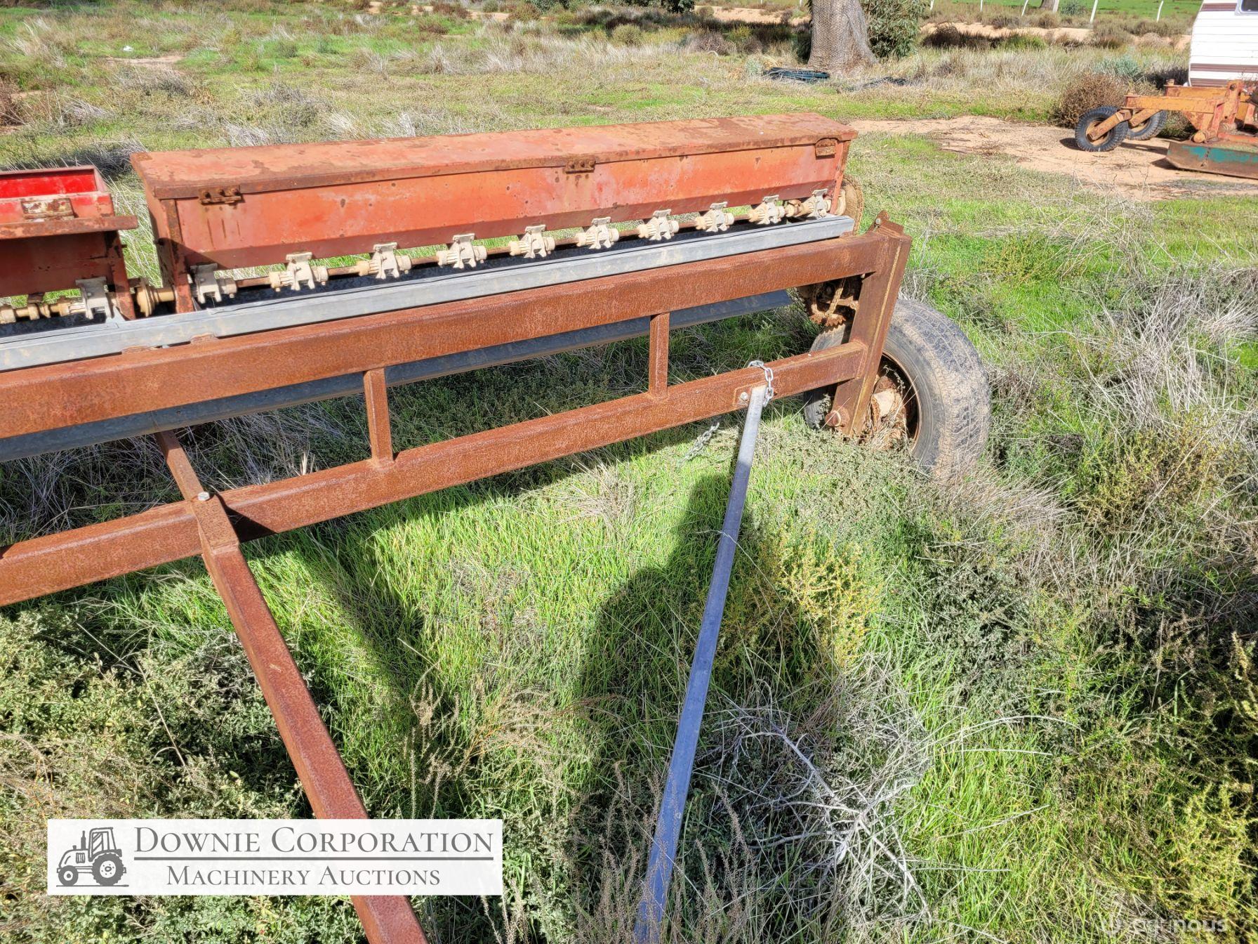 Small Seeds Drop Seeder, well constructed, ideal for Lucerne. Bracket for drive cogs bent, will need repairing.