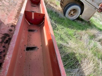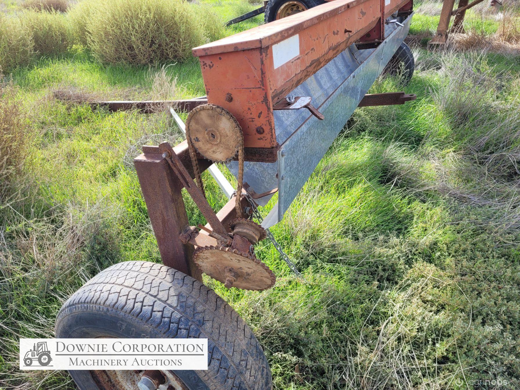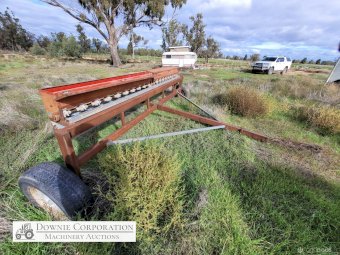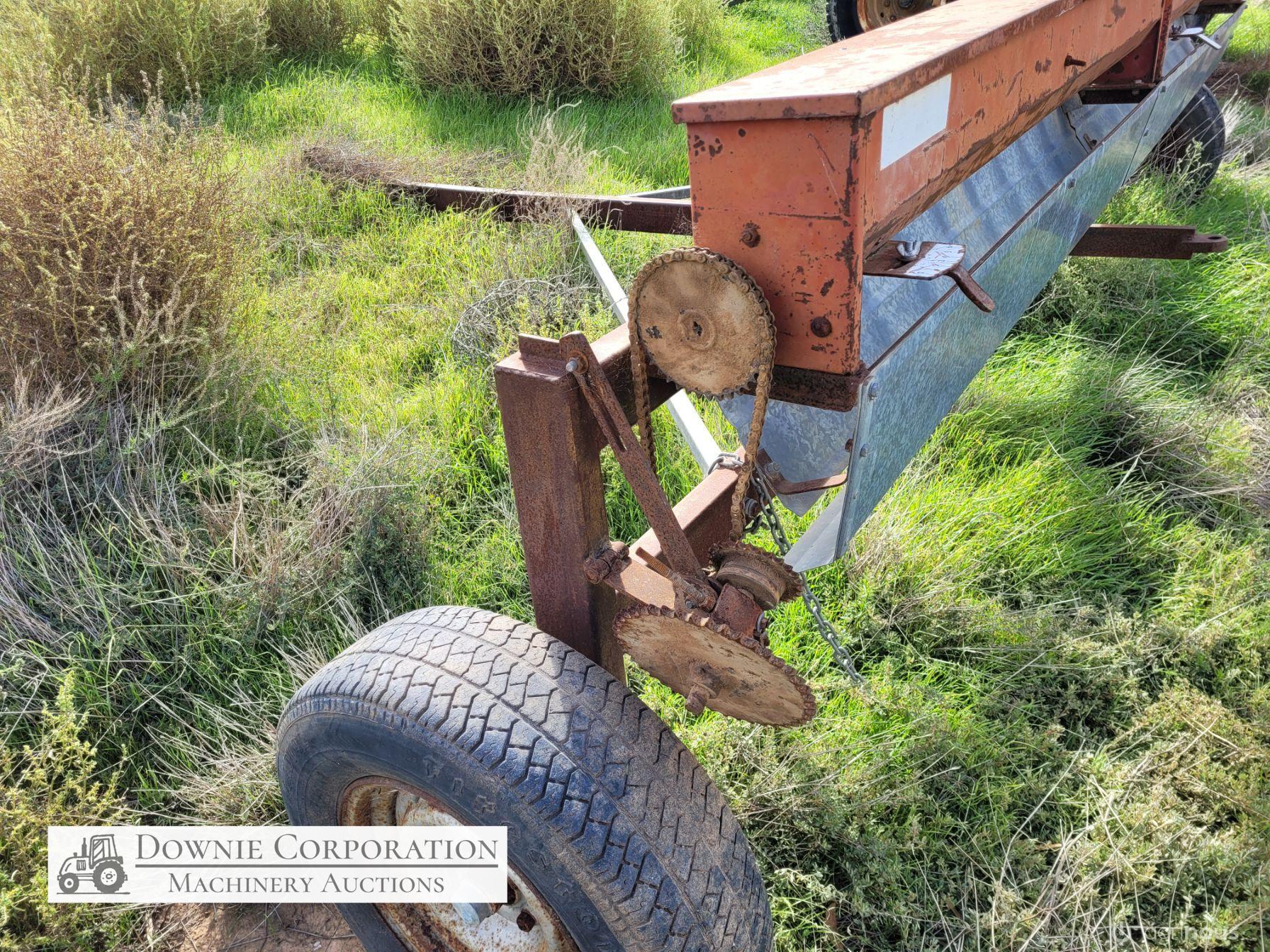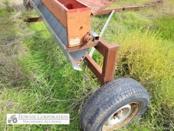 Small Seeds Drop Seeder, well constructed, ideal for Lucerne. Bracket for drive cogs bent, will need repairing.