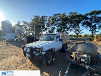 Toyota HZJ75 Landcruiser; 4.2 Ltr 6cyl diesel; 443,691 Kms; Steel bull bar; Steel tray with crate; Near new tyres; Starts, runs & drives well; Currently on Vic Rego (But sold un-reg); Has some rust under windscreen & seats worn/torn; Might pass a roadworthy with some repairs.