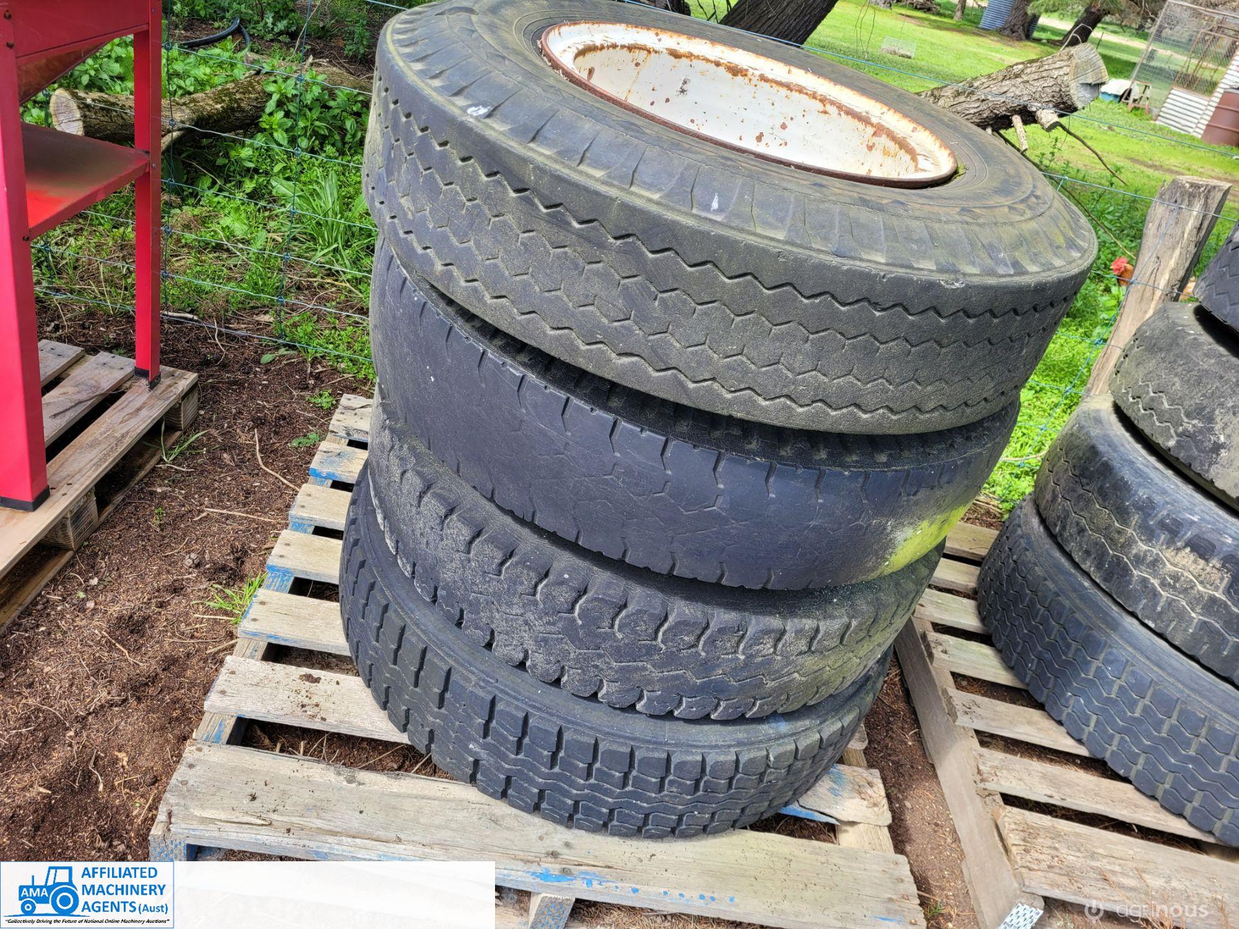 2x Spider Truck Rims & Tyres - 2x 10 stud rims with 11" centres - All with 9.00x20 Tyres
