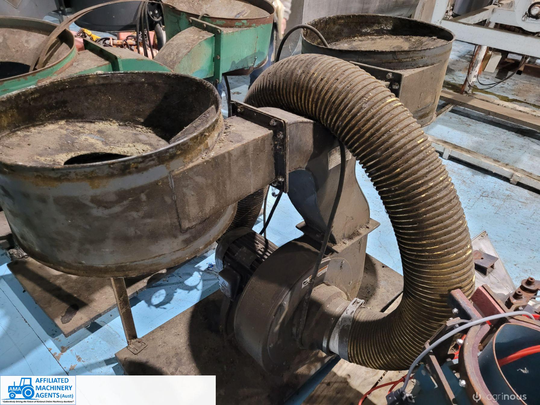 Twin Dust Extractors (No.3 - unpainted), 3 phase electric fan in working condition on trolley.
