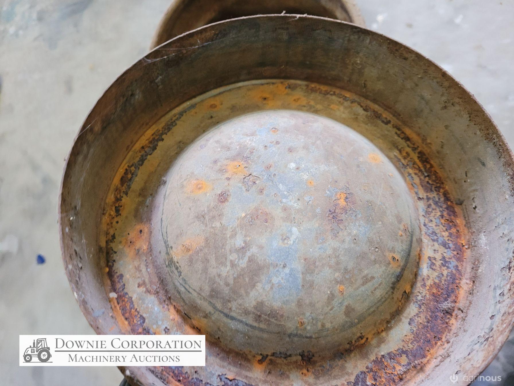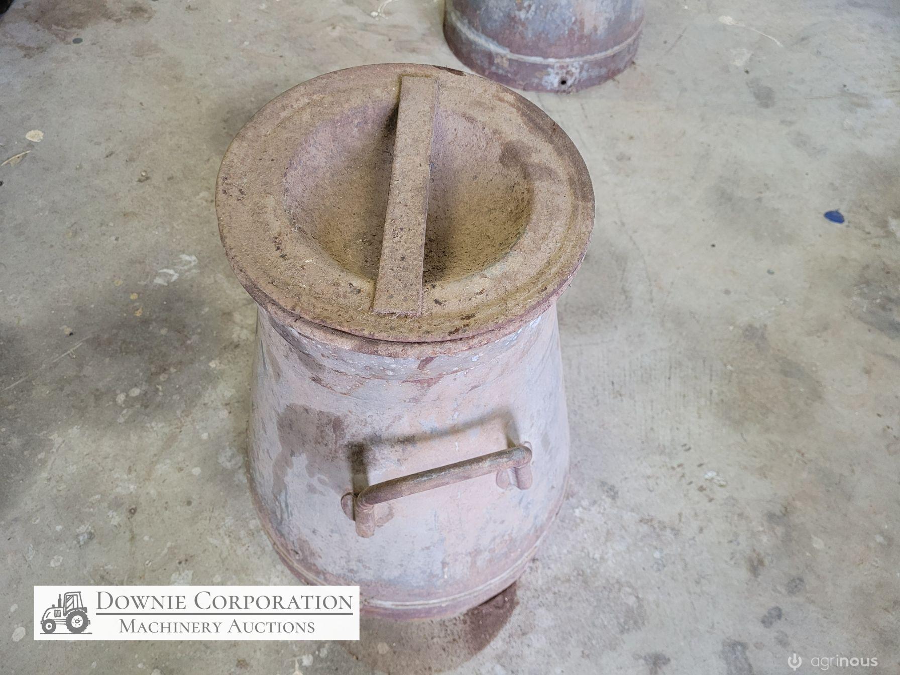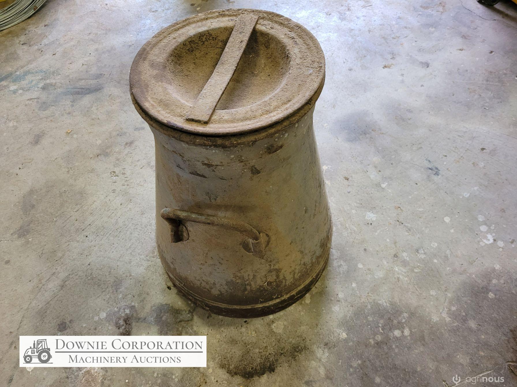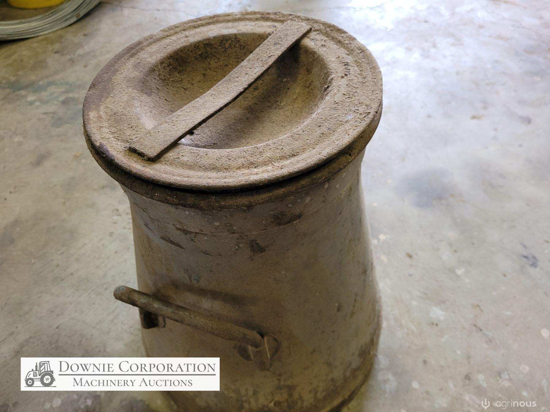 Very rare & unique tapered cream can, opening 8-1/2 inches, base 14", heavy construction, only some surface rust, comes with lid. Good condition. Suit Collectors.