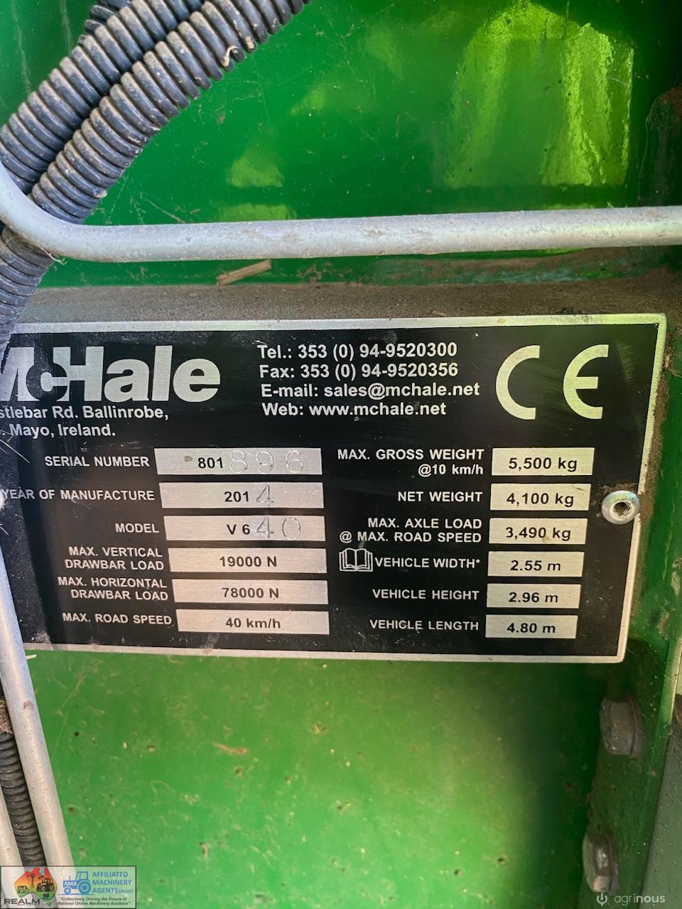Mchale Bailer excellent condition very little use always shedded reason for selling heading in a different direction